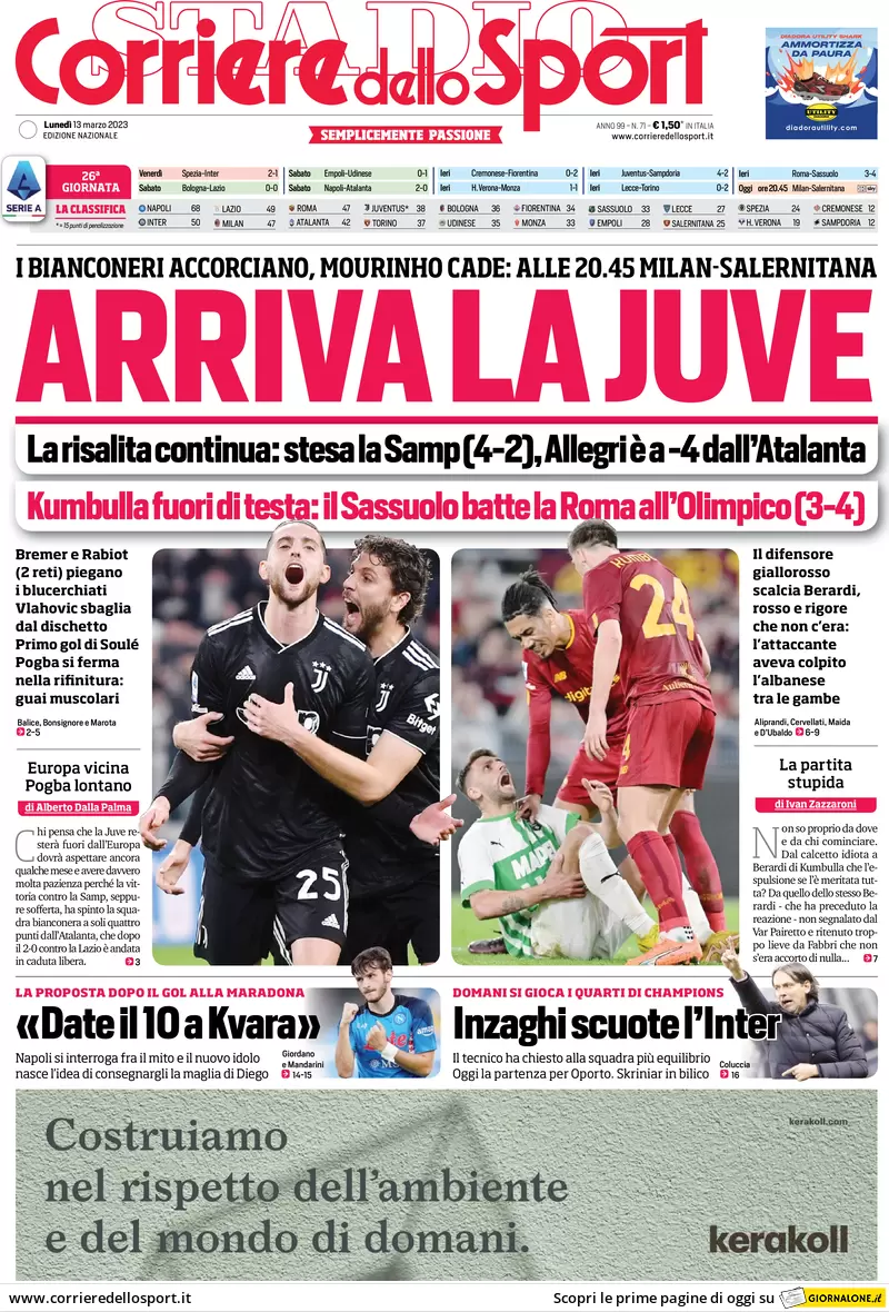 Le prime pagine dei quotidiani sportivi – 13 marzo