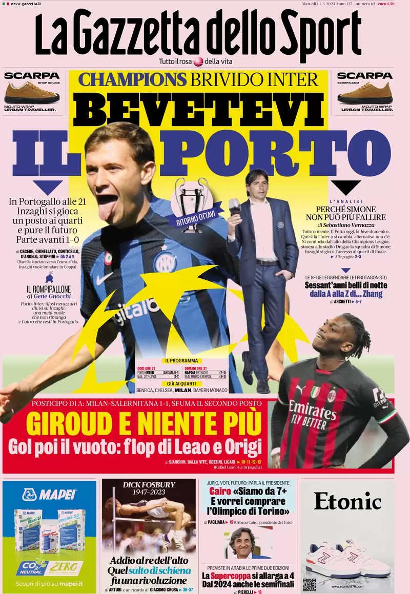 Le prime pagine dei quotidiani sportivi – 14 marzo
