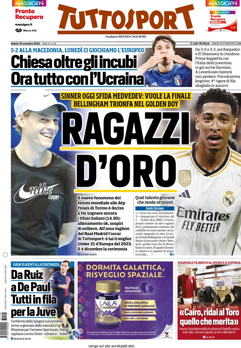 Le prime pagine dei quotidiani sportivi – 18 novembre