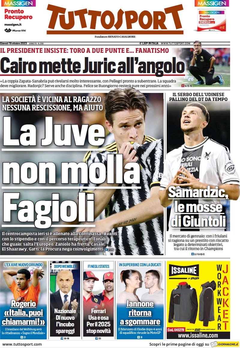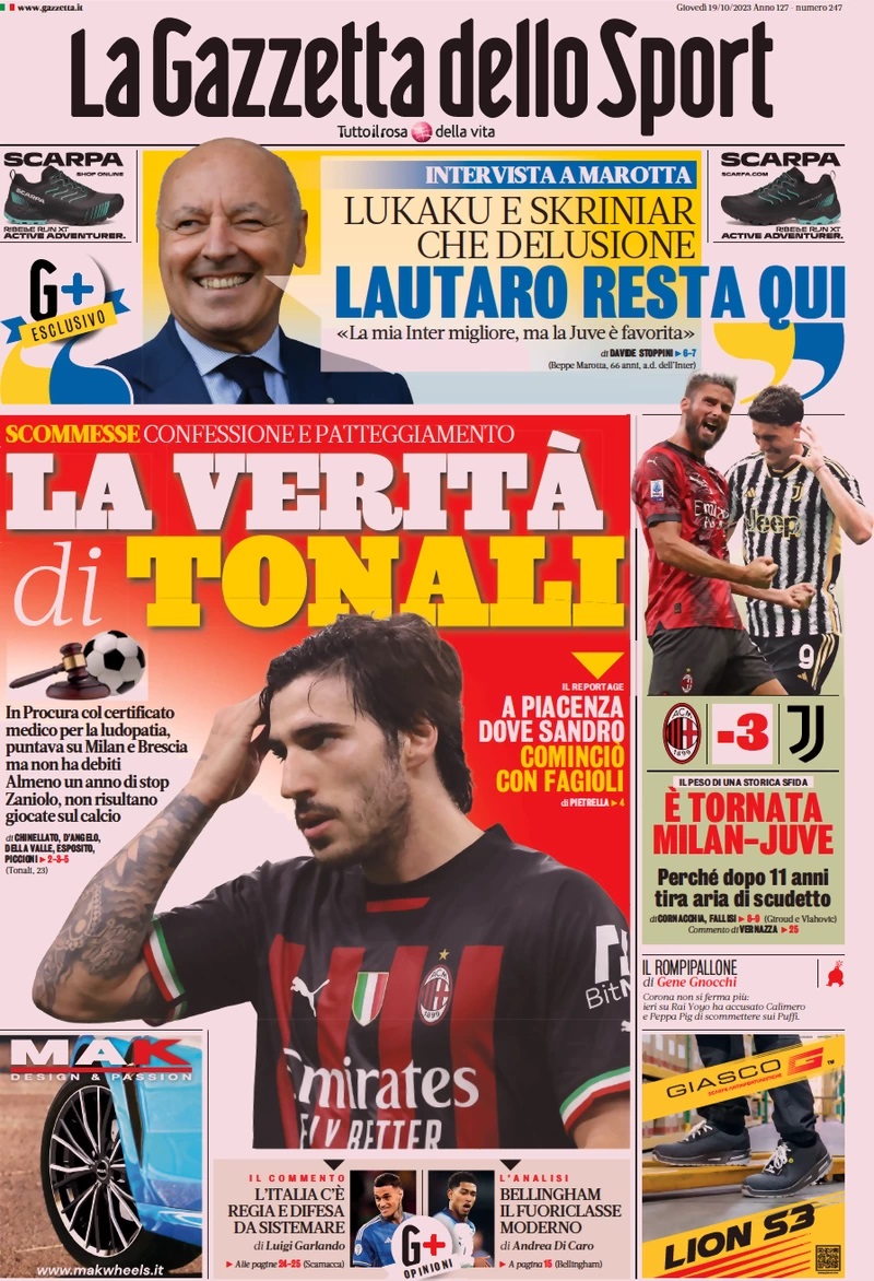 Le prime pagine dei quotidiani sportivi – 19 ottobre