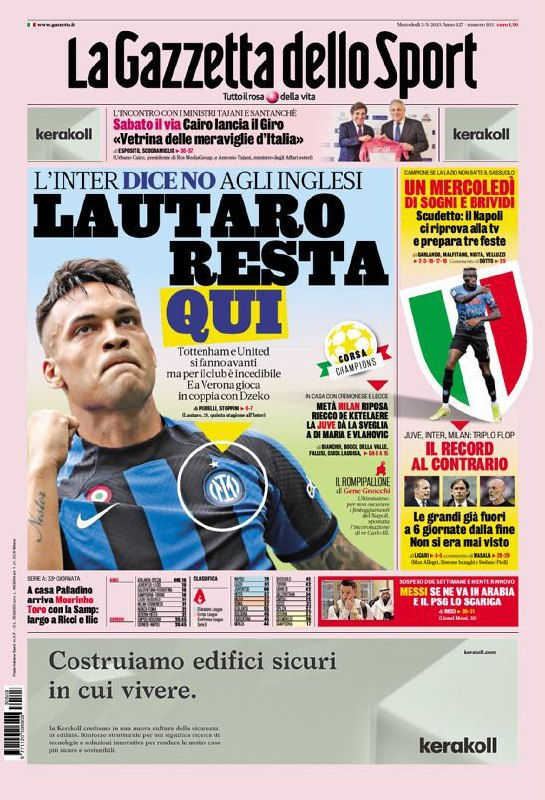 Le prime pagine dei quotidiani sportivi di oggi in edicola: Tuttosport, Gazzetta dello Sport e Corriere dello Sport