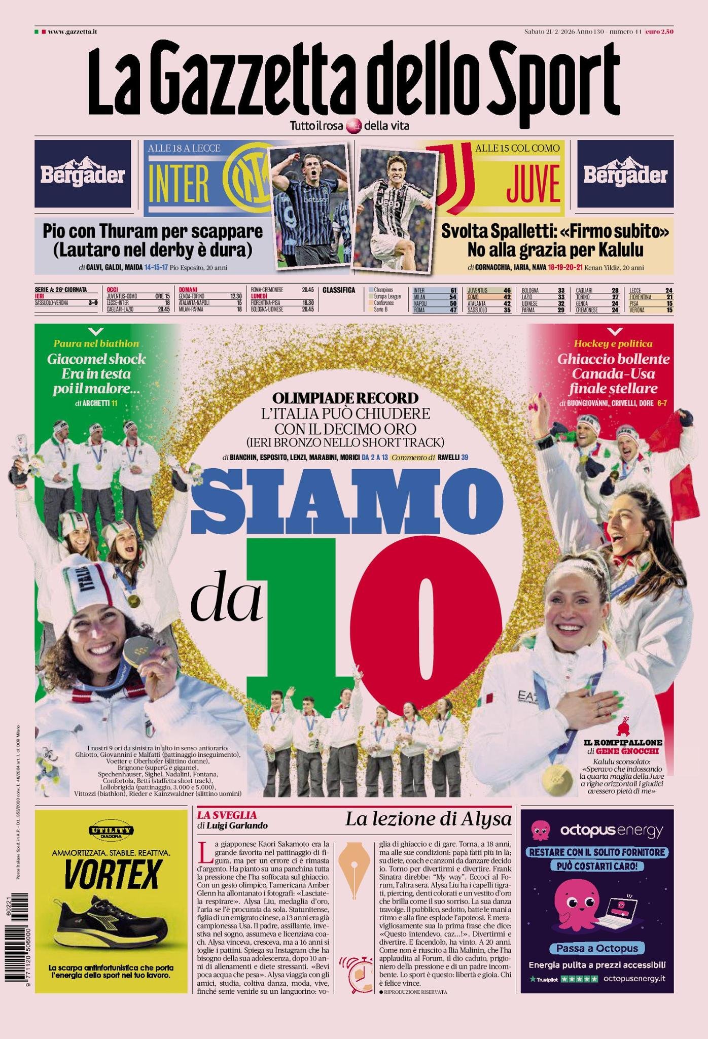 Le prime pagine dei quotidiani sportivi – 21 febbraio 2026