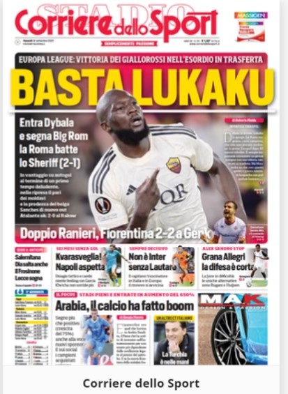 Le prime pagine dei quotidiani sportivi – 22 settembre