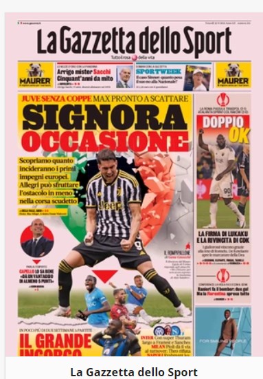 Le prime pagine dei quotidiani sportivi di oggi in edicola: Tuttosport, Gazzetta dello Sport e Corriere dello Sport