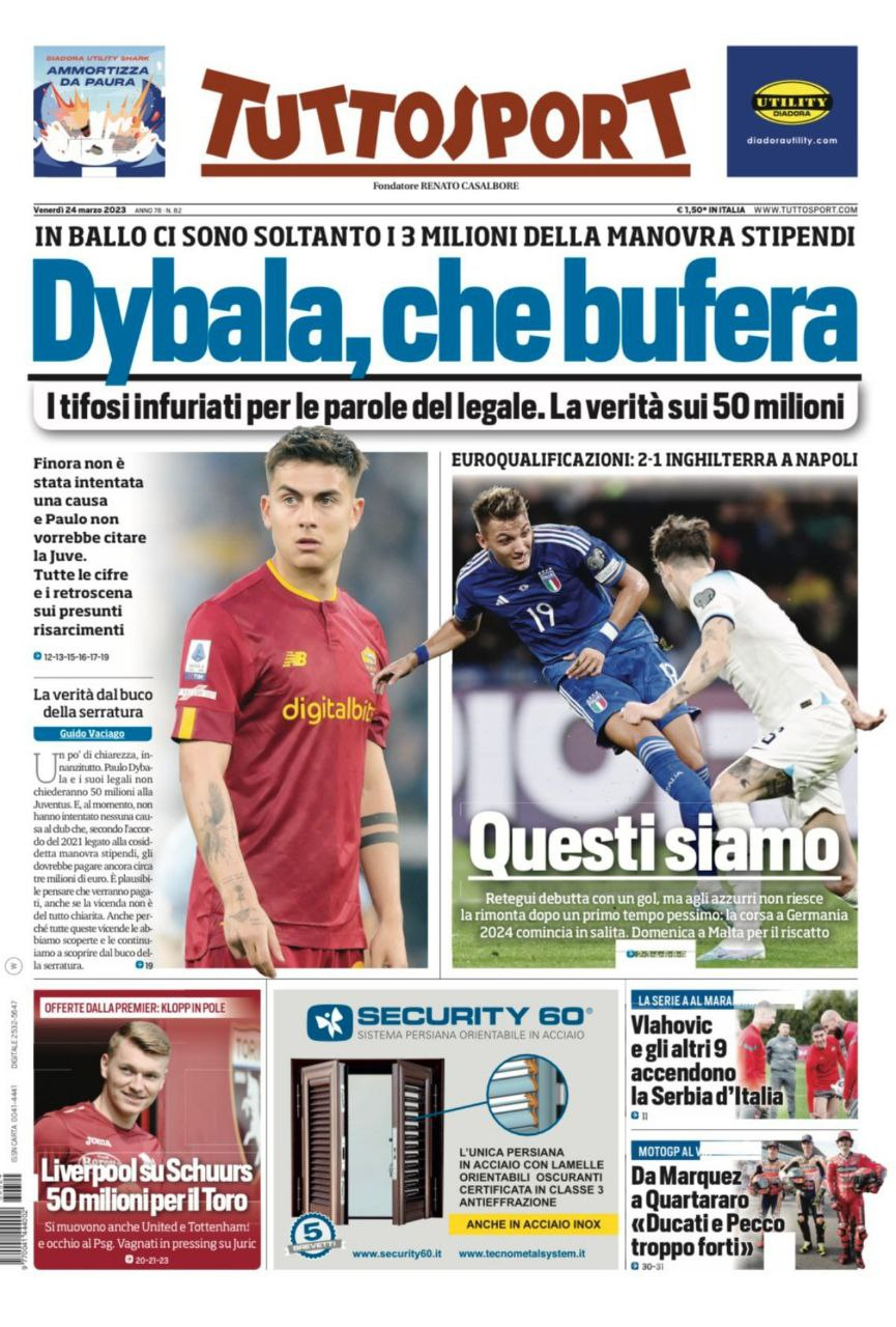 Le prime pagine dei quotidiani sportivi – 24 marzo