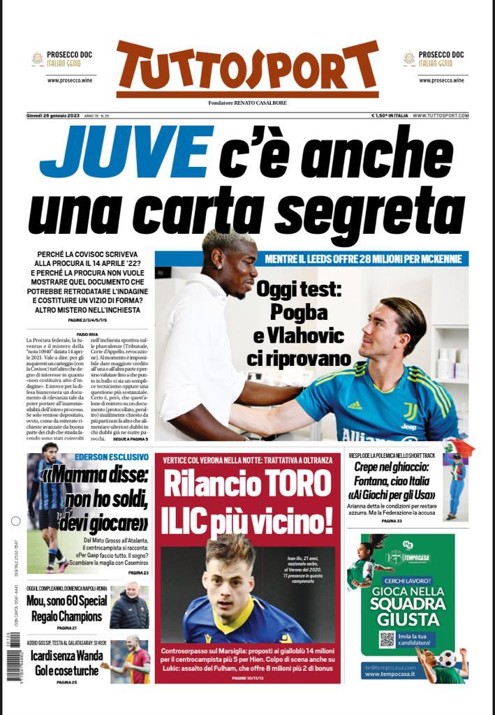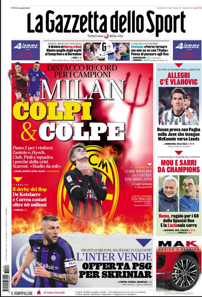 2023 Le prime pagine dei quotidiani sportivi – 26 gennaio Published 3 anni ago on 26 Gennaio 2023 By Redazione CalcioNews24 Le prime pagine dei quotidiani sportivi di oggi in edicola: Tuttosport, Gazzetta dello Sport e Corriere dello Sport Related Topics:Newsprima-paginaZONEFOOTBALL Il calcio del giorno Ultimissime Calcio Streaming2 ore ago Partite oggi, stasera e domani: guida alla Diretta TV Guida alla diretta TV: la diretta delle partite di oggi di Serie A, Serie B, Mondiale per club, Champions ed... video Hanno Detto2 giorni ago Andrea Bargione Di Canio svela: «Alla Juve si respirava un’identità fortissima. Quando arrivai io c’erano Boniperti, Trapattoni, erano delle istituzioni: trasmettevano questi valori» – VIDEO Paolo Di Canio promuove Luciano Spalletti: ecco che cosa ha dato alla Juventus e cosa serve per rilanciarsi. Le parole...