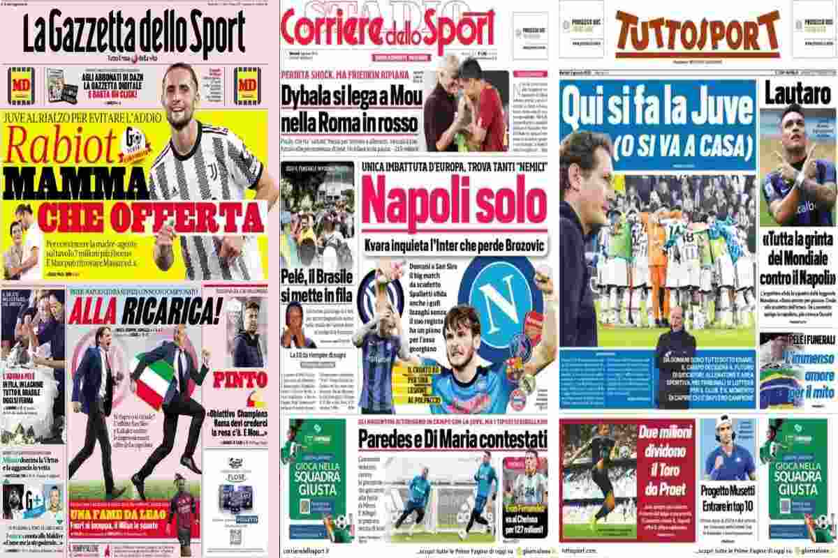 Le prime pagine dei quotidiani sportivi – 3 gennaio