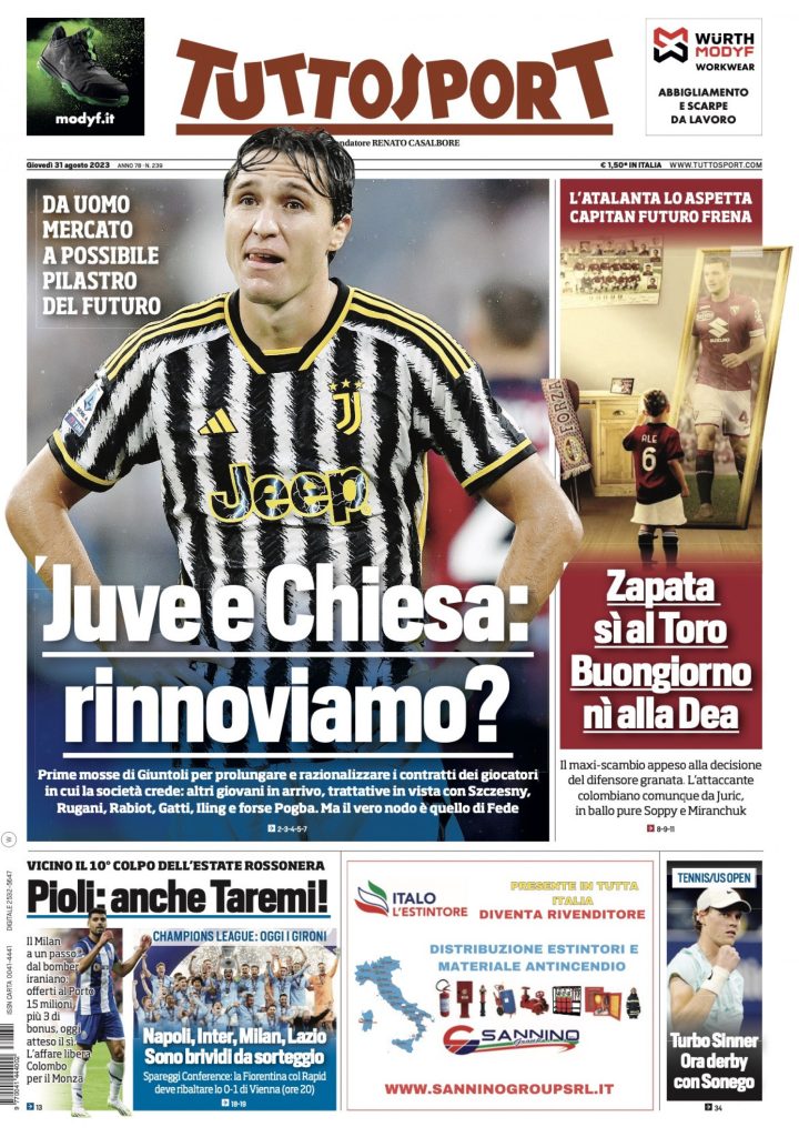 Le prime pagine dei quotidiani sportivi – 31 agosto