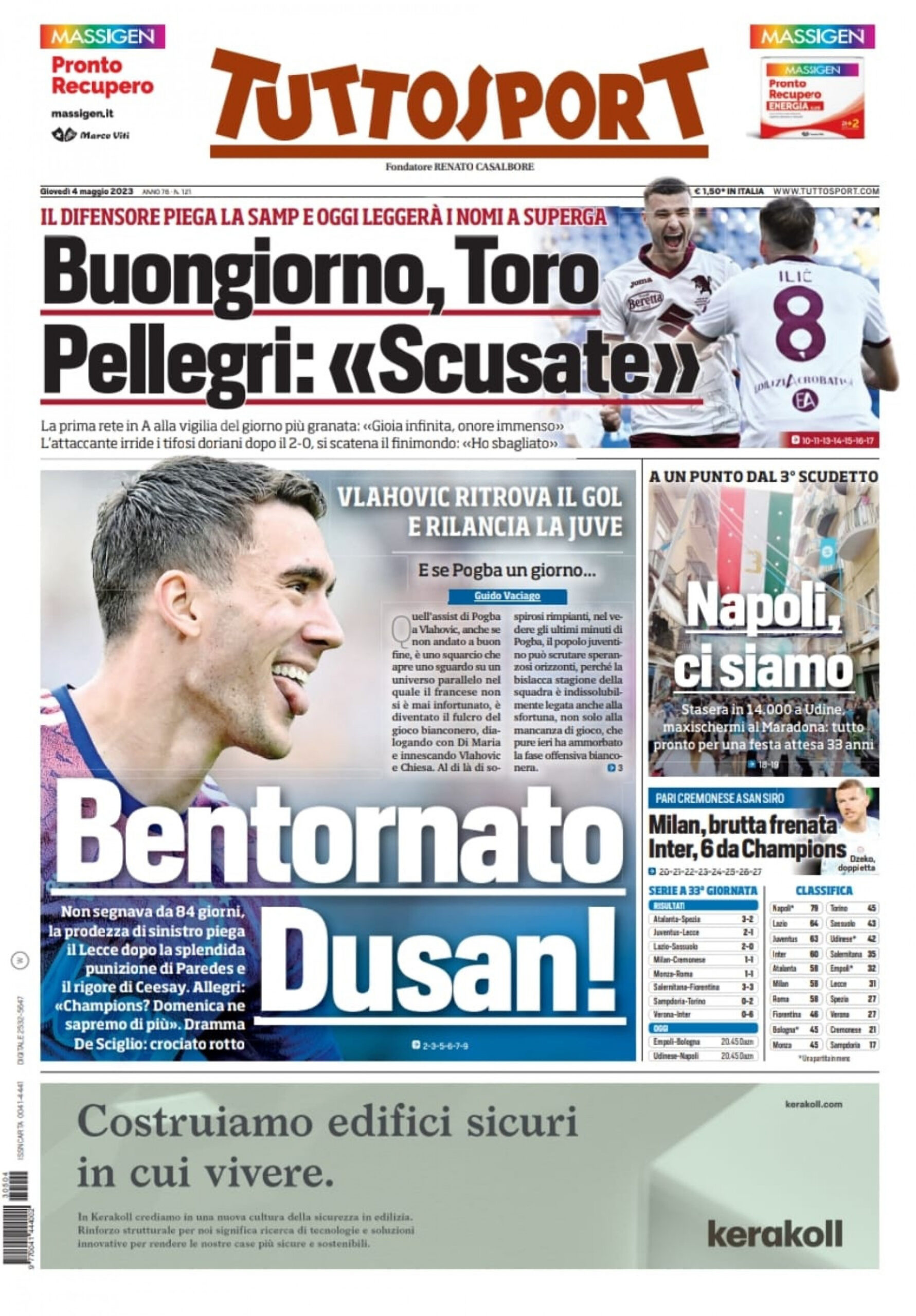 Le prime pagine dei quotidiani sportivi – 4 maggio