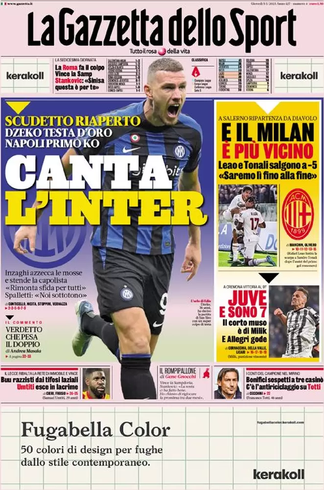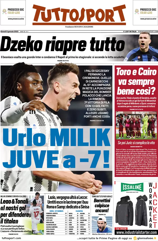 Le prime pagine dei quotidiani sportivi – 5 gennaio