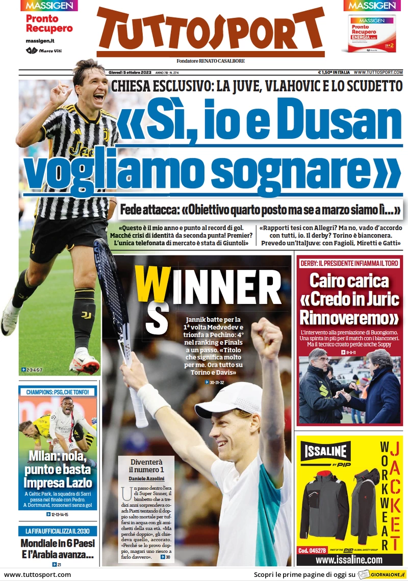 Le prime pagine dei quotidiani sportivi – 5 ottobre