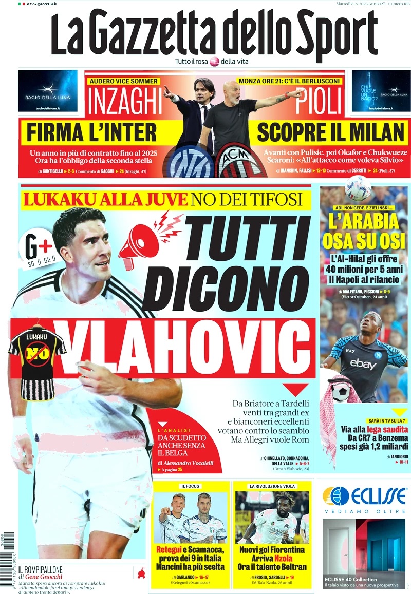 Le prime pagine dei quotidiani sportivi – 8 agosto
