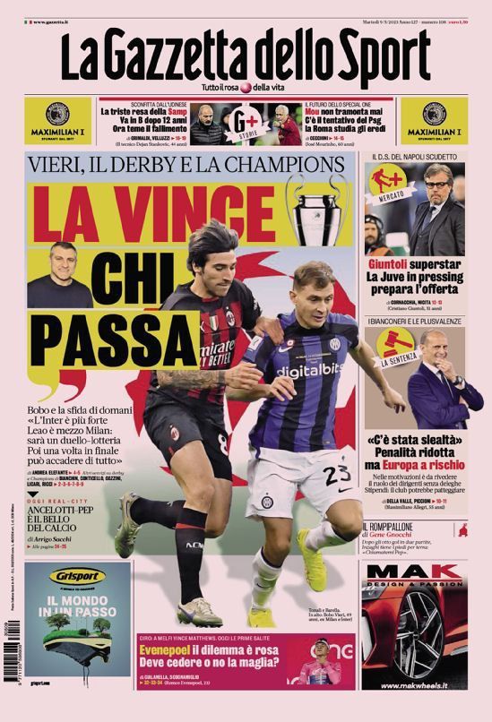 Le prime pagine dei quotidiani sportivi – 9 maggio