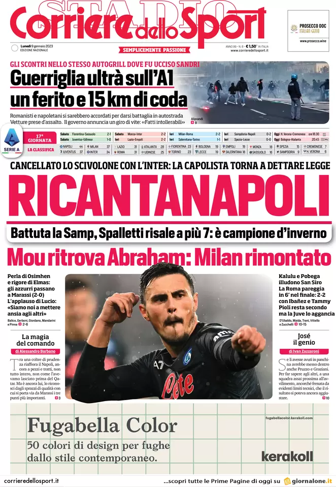 Le prime pagine dei quotidiani sportivi – 9 gennaio