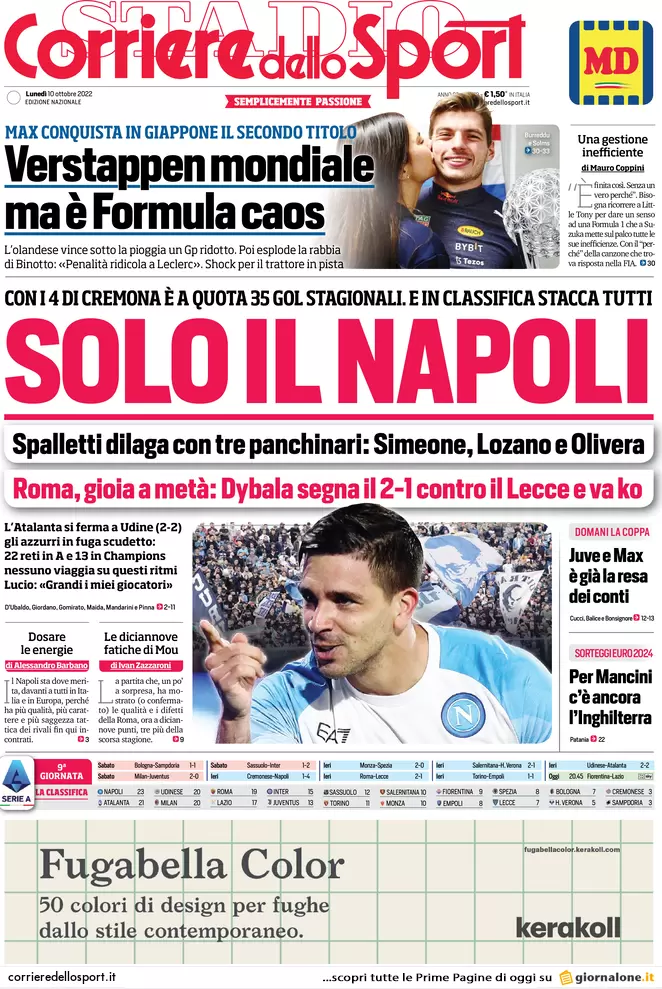 Le prime pagine dei quotidiani sportivi di oggi – 10 ottobre
