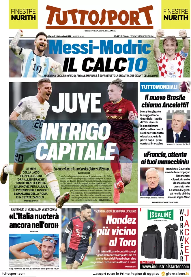 Le prime pagine dei quotidiani sportivi di oggi – 13 dicembre - Calcio News 24