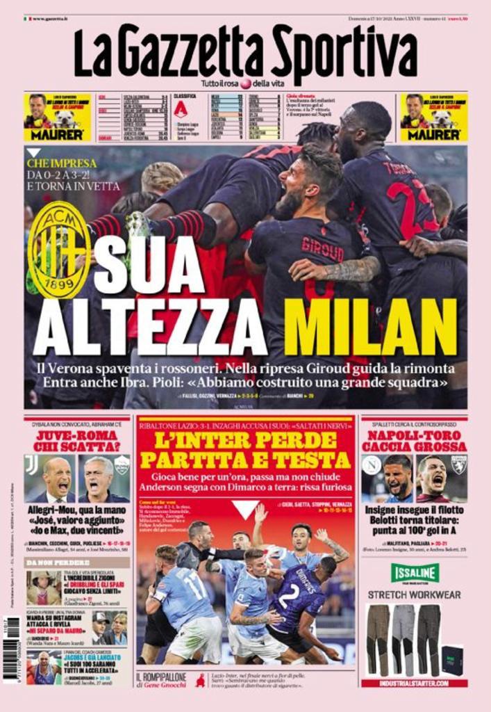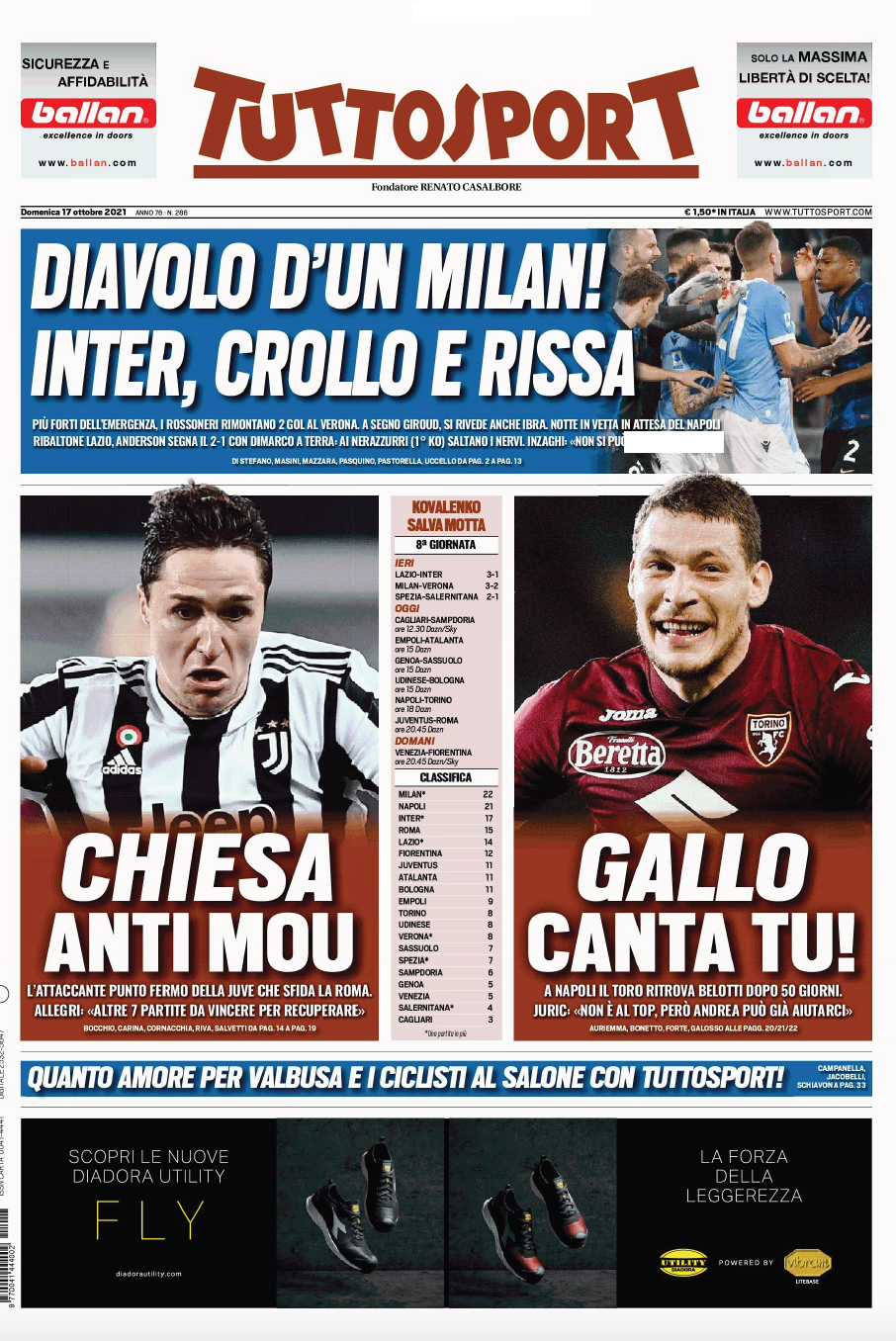 Le prime pagine dei quotidiani sportivi di oggi – 17 ottobre