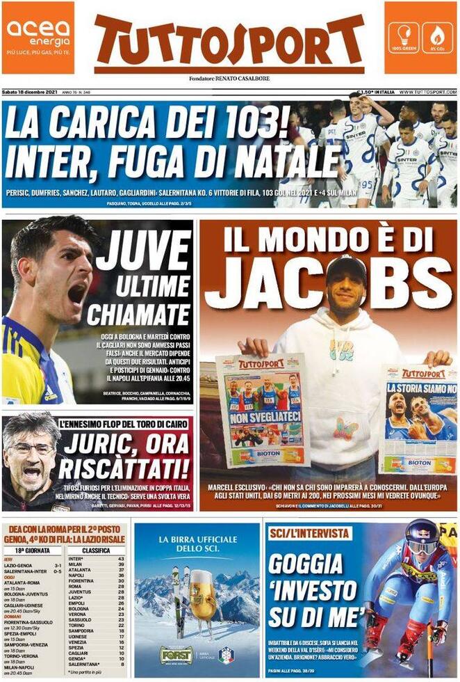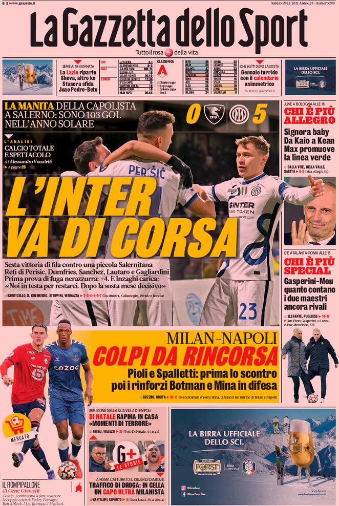 Le prime pagine dei quotidiani sportivi di oggi – 18 dicembre
