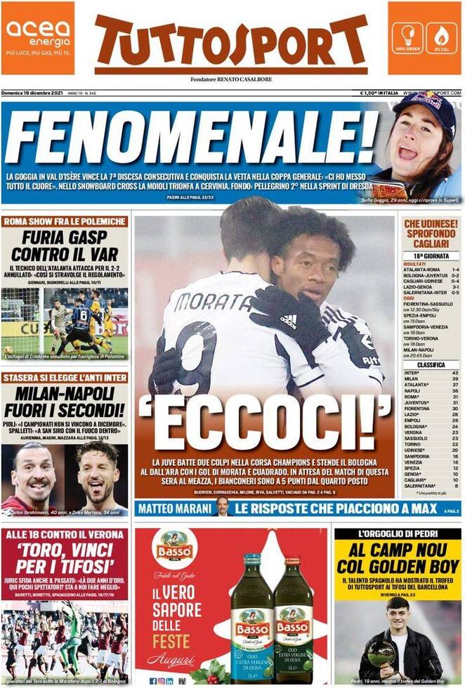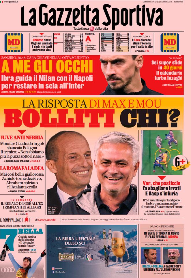 Le prime pagine dei quotidiani sportivi di oggi – 19 dicembre