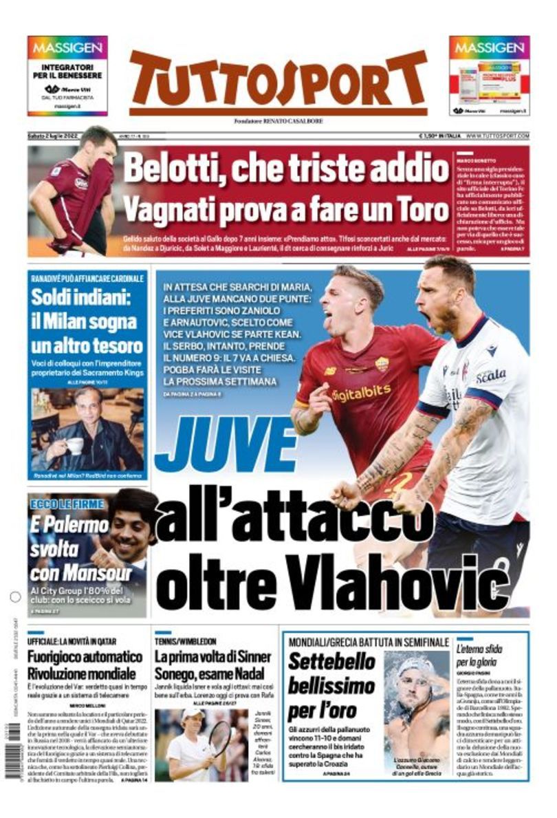 Le prime pagine dei quotidiani sportivi di oggi – 2 luglio