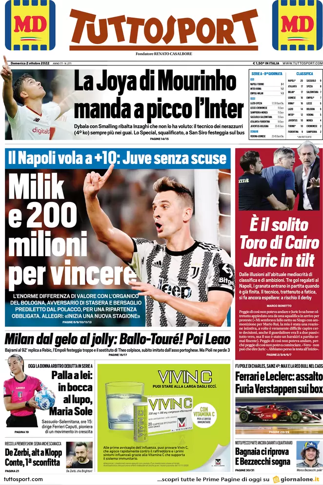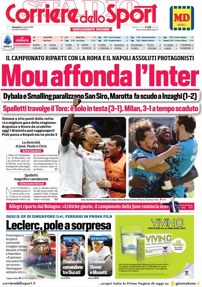 Le prime pagine dei quotidiani sportivi di oggi – 2 ottobre
