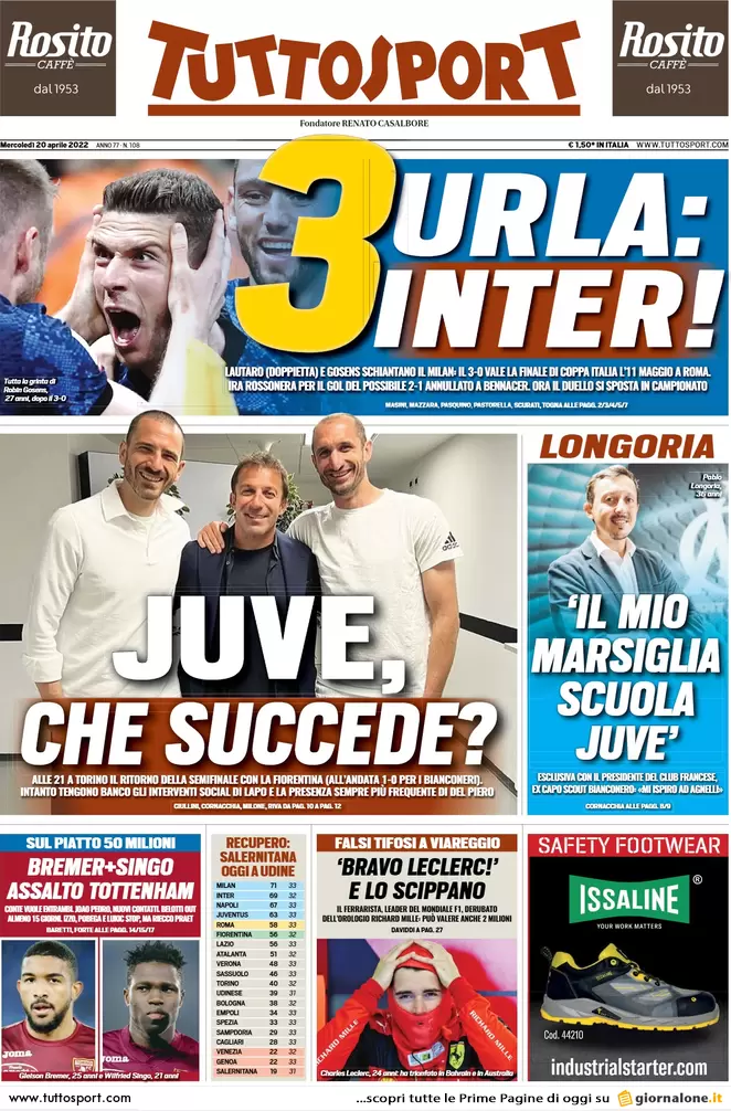 Le prime pagine dei quotidiani sportivi di oggi – 20 aprile