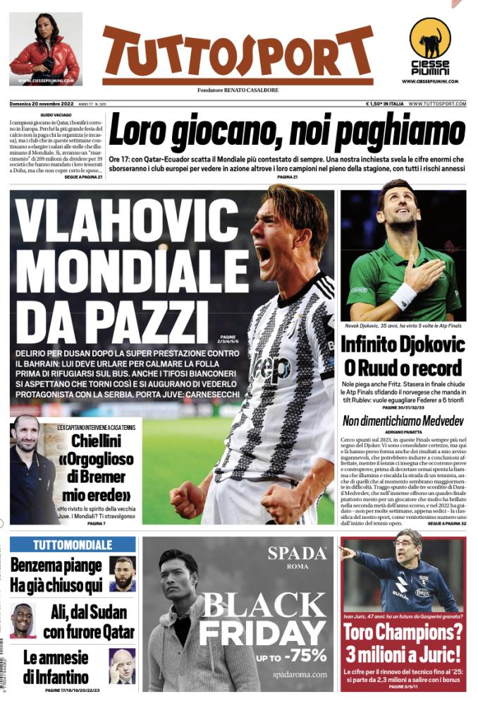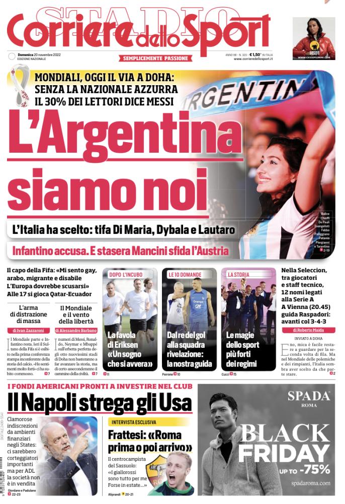 Le prime pagine dei quotidiani sportivi di oggi – 20 novembre