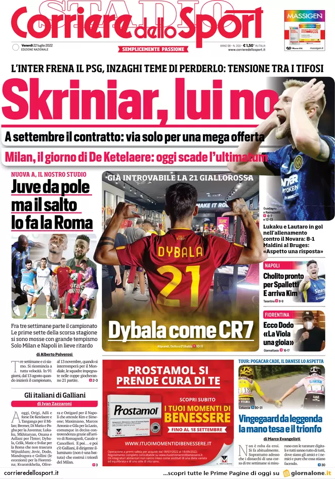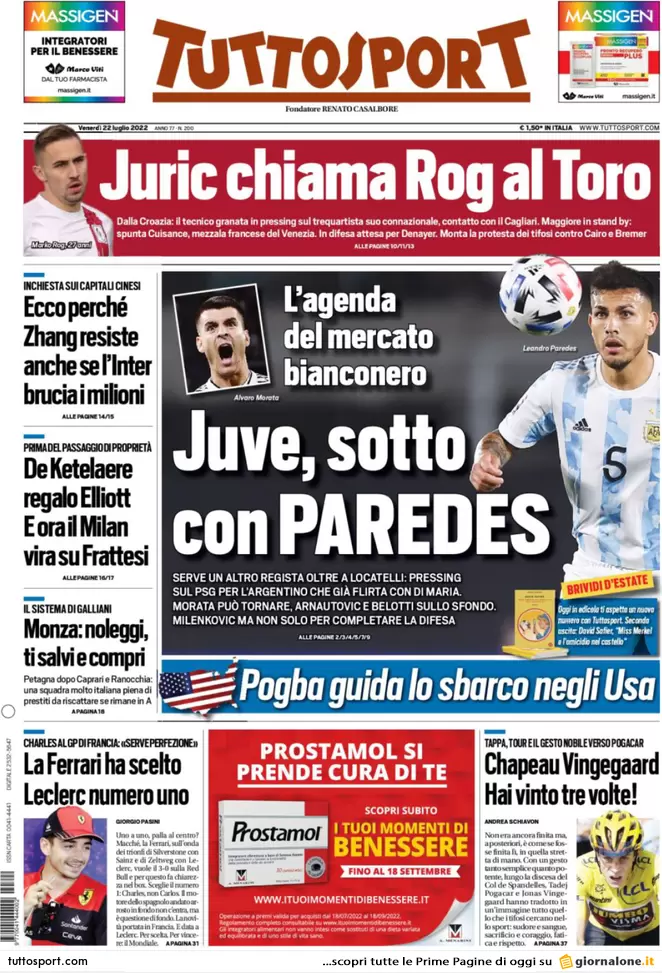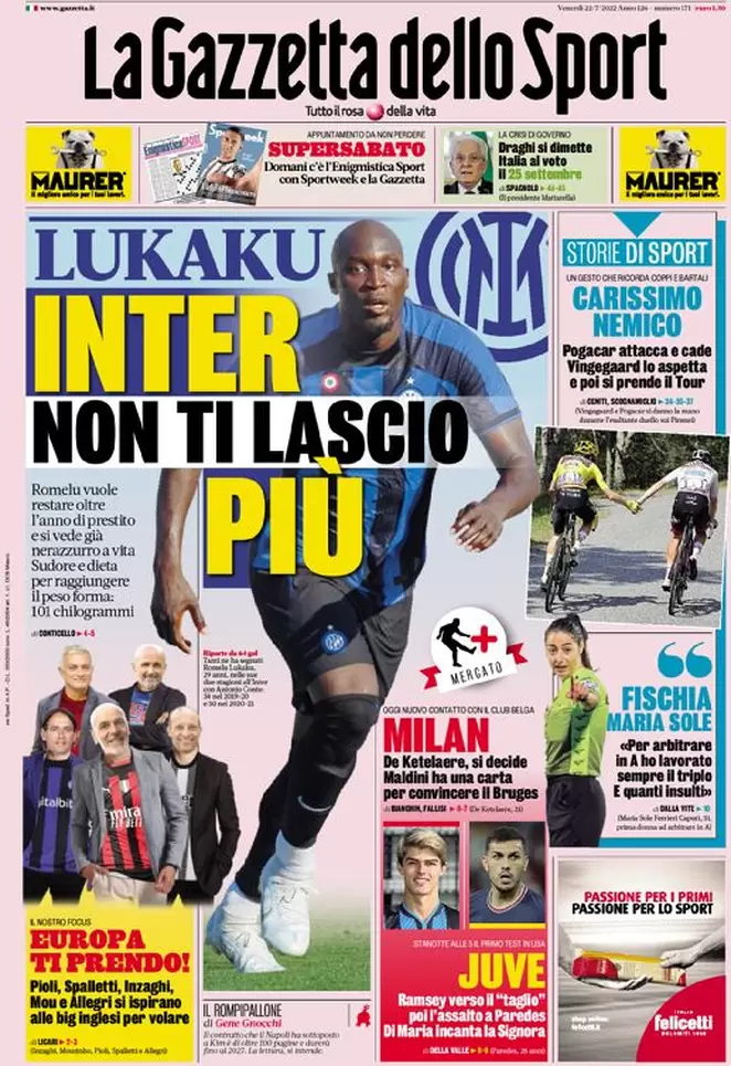 Le prime pagine dei quotidiani sportivi di oggi – 22 luglio