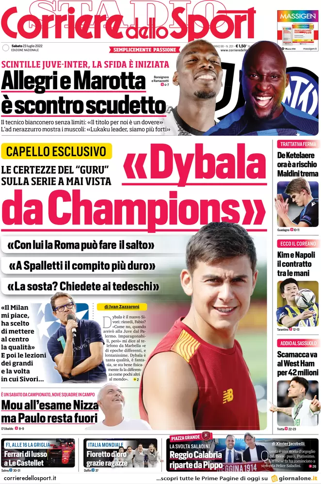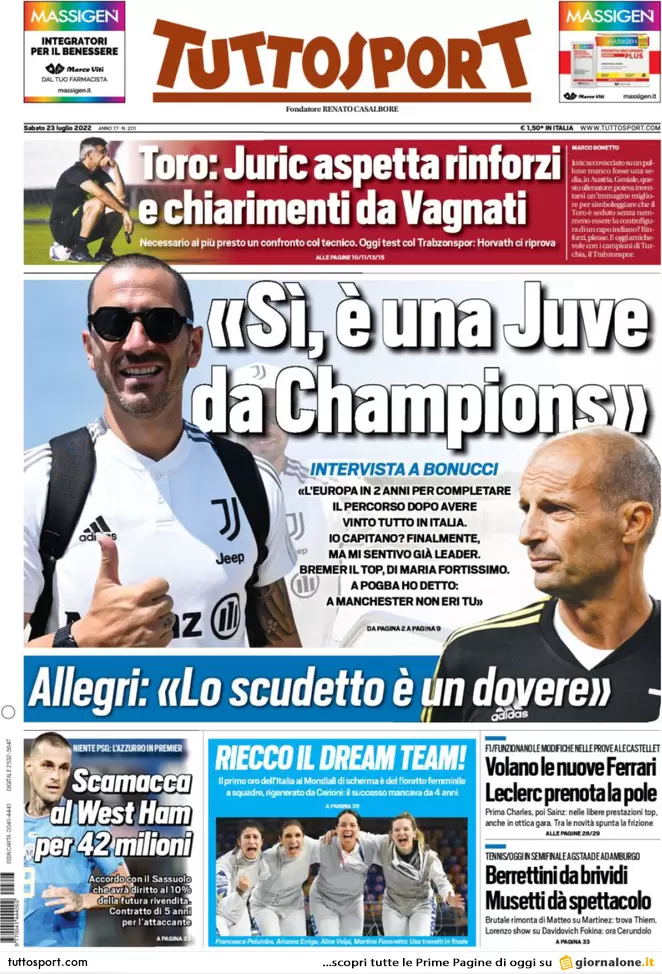 Le prime pagine dei quotidiani sportivi di oggi - 23 luglio - Calcio News 24