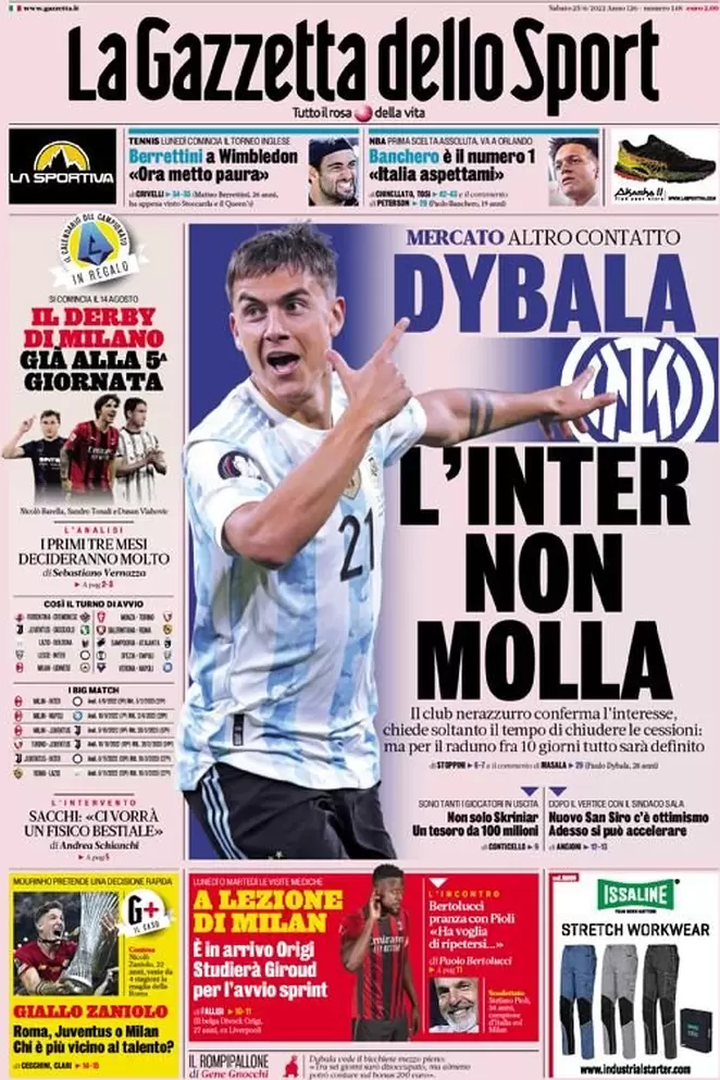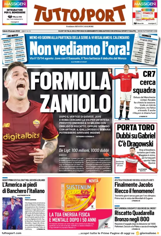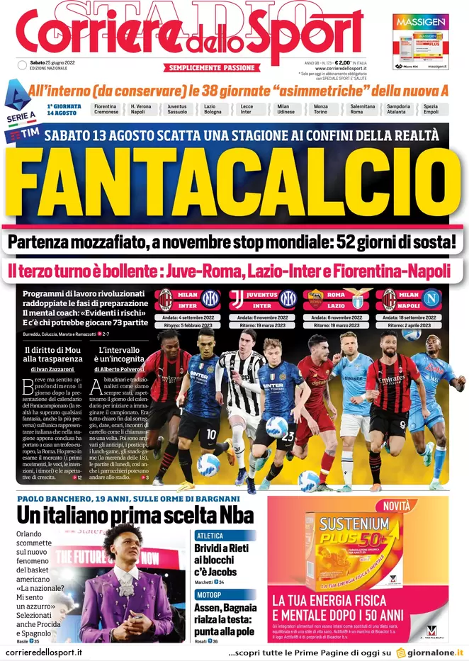 Le prime pagine dei quotidiani sportivi di oggi – 25 giugno
