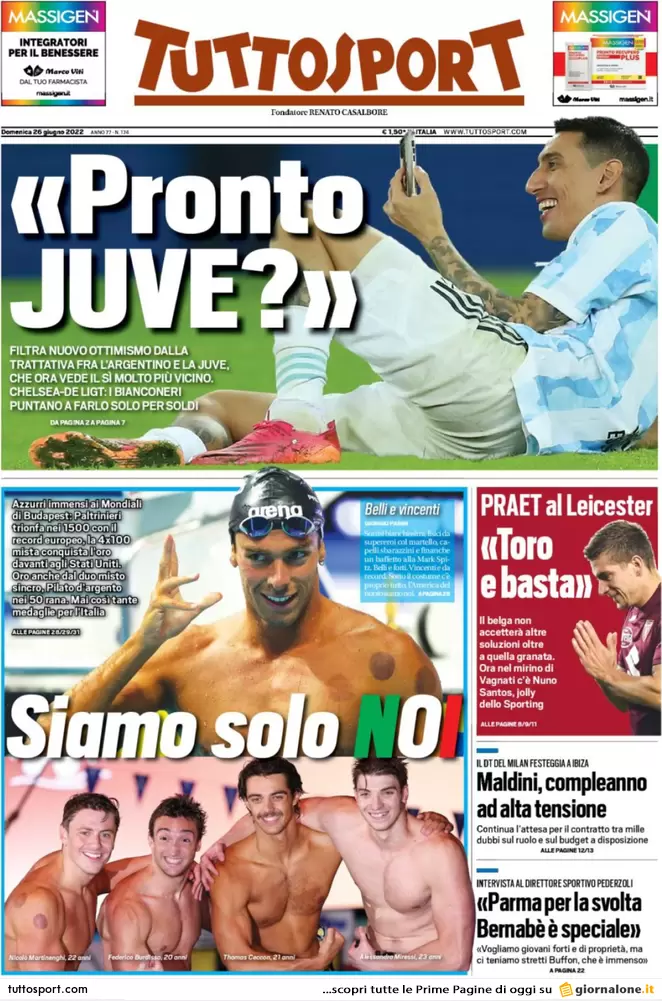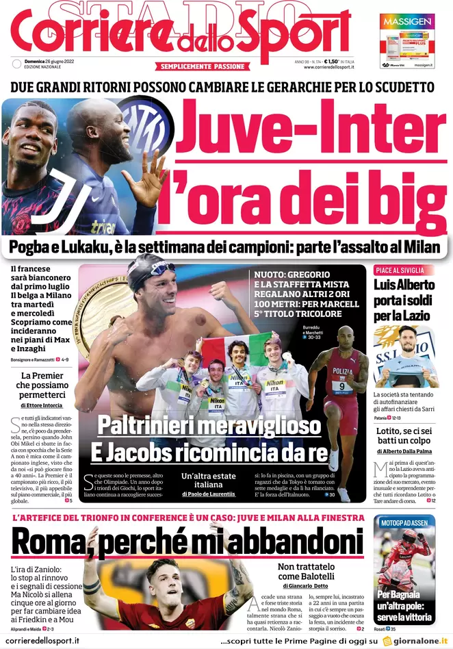 Le prime pagine dei quotidiani sportivi di oggi – 26 giugno
