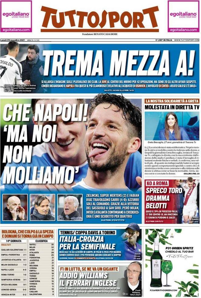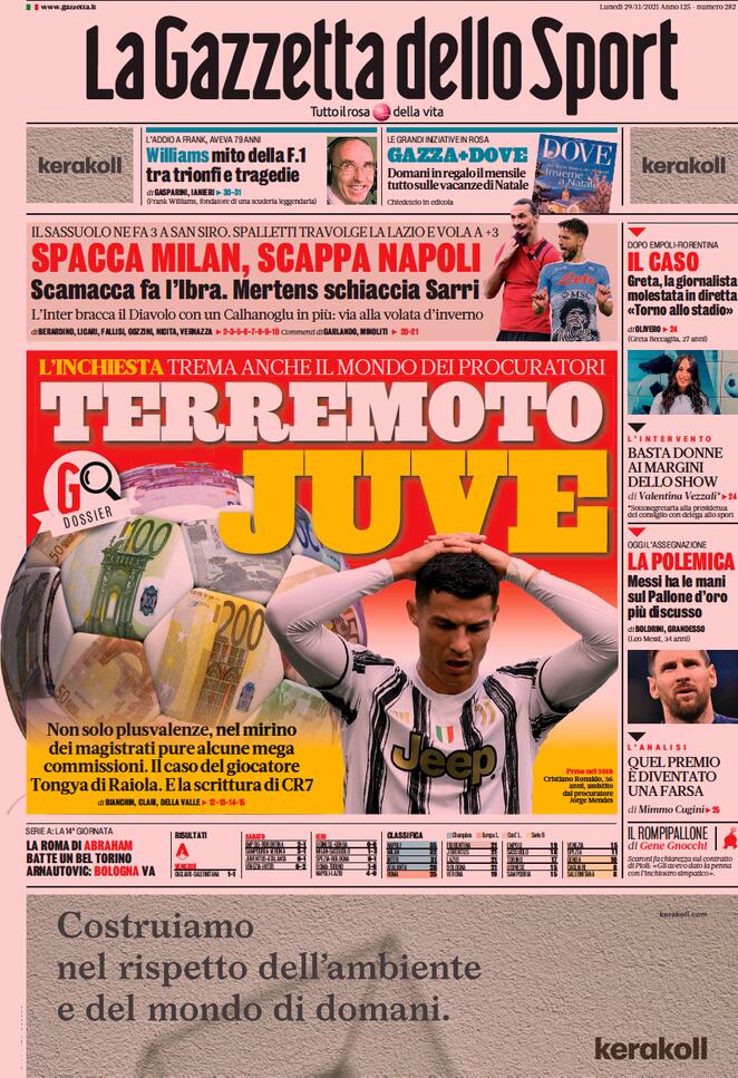 Le prime pagine dei quotidiani sportivi di oggi – 29 novembre