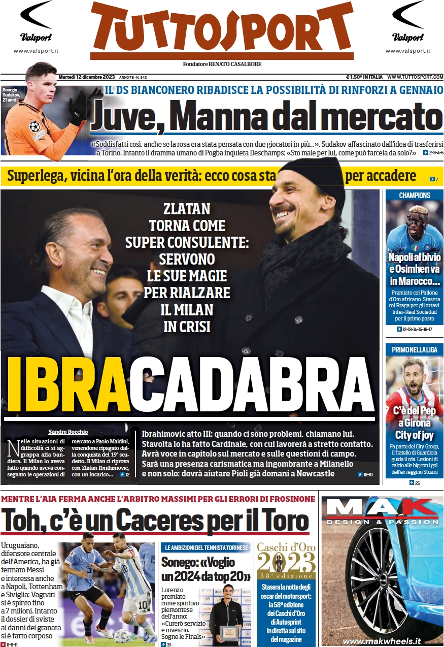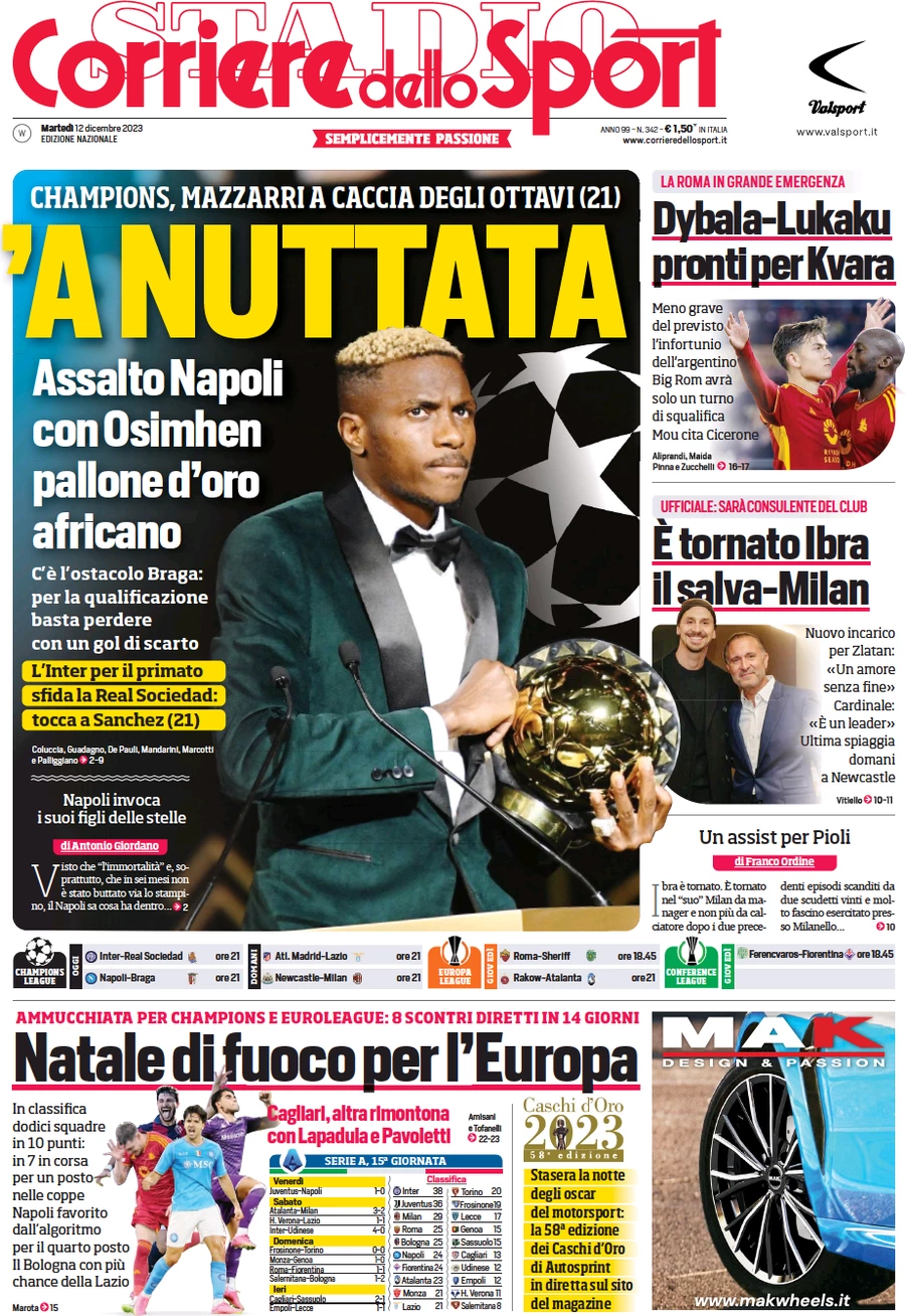 Le Prime Pagine Sportive Nazionali – 12 dicembre