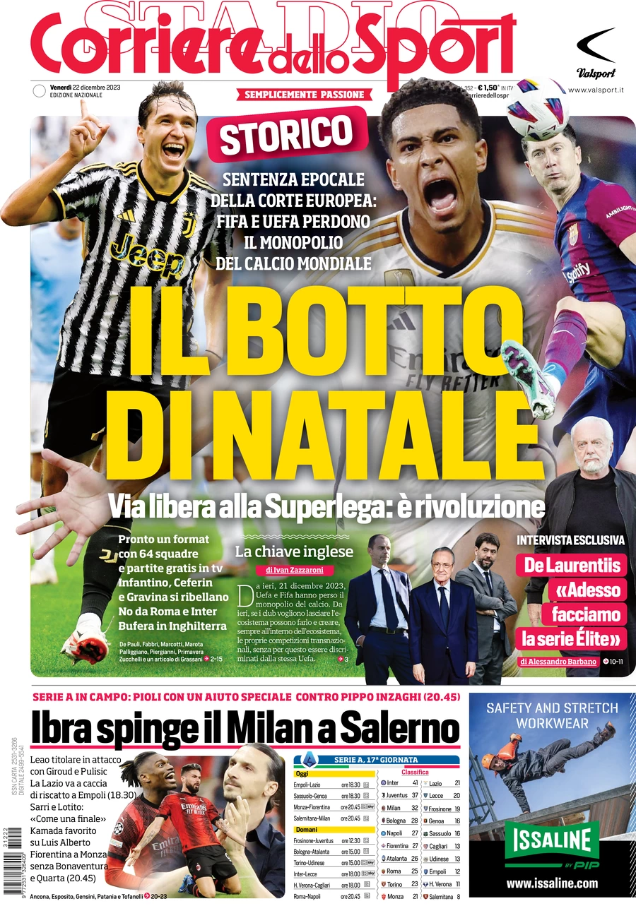 Le Prime Pagine Sportive Nazionali – 22 dicembre