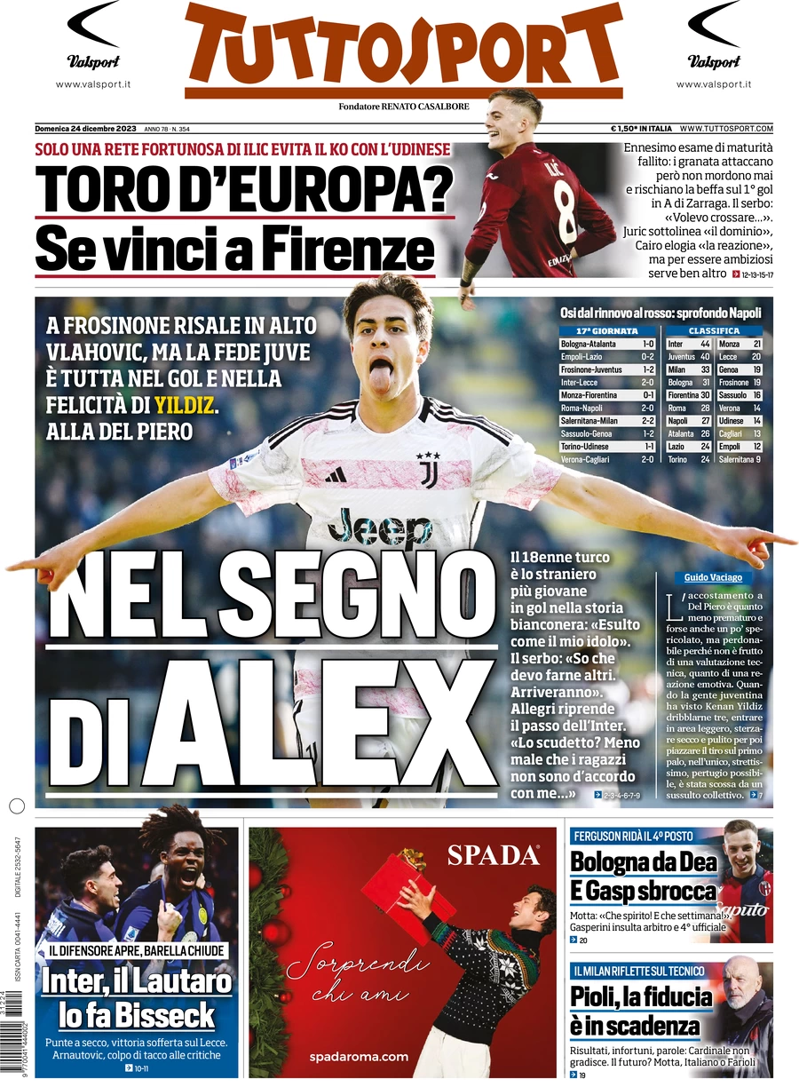 Le Prime Pagine Sportive Nazionali – 24 dicembre