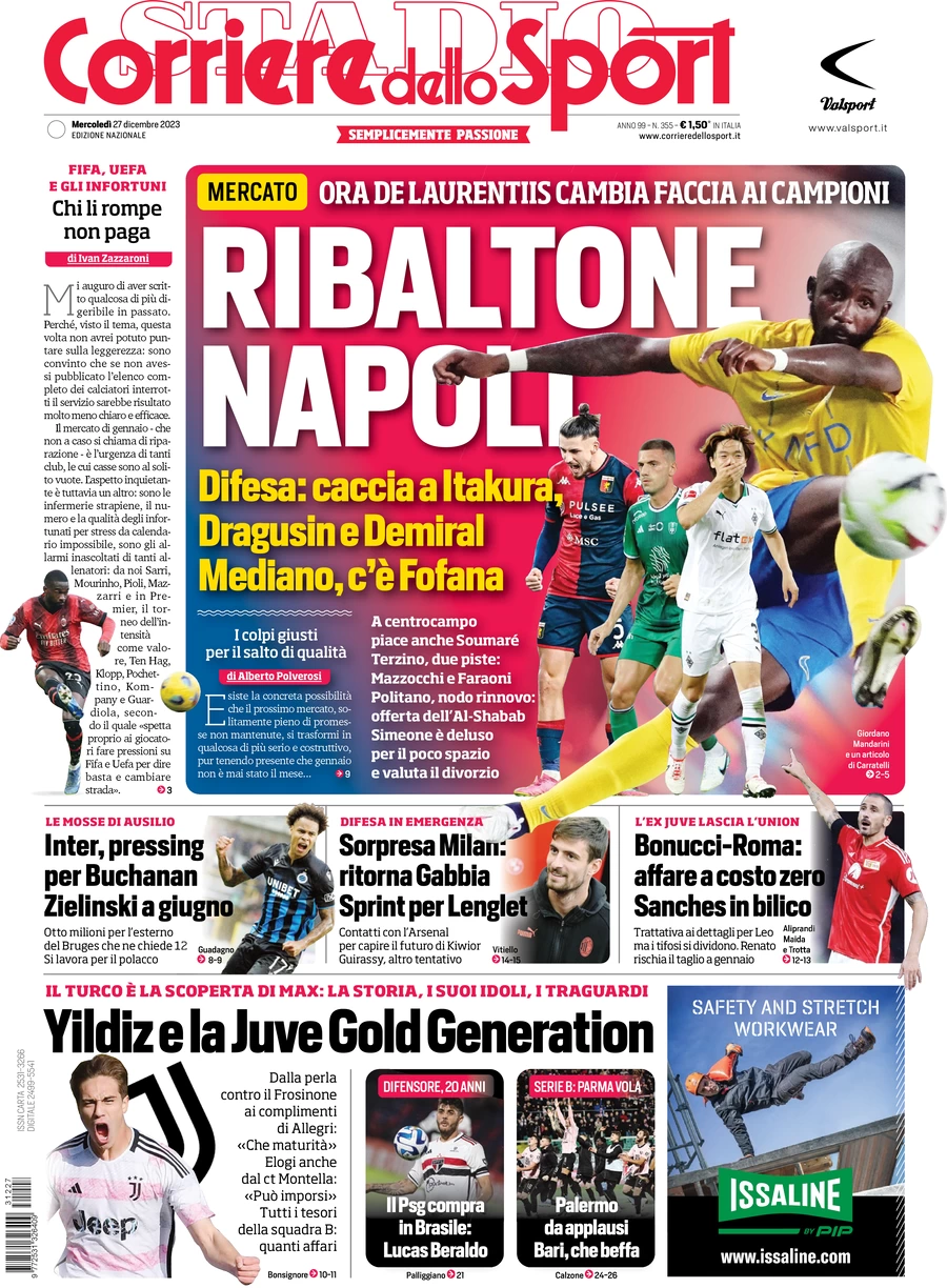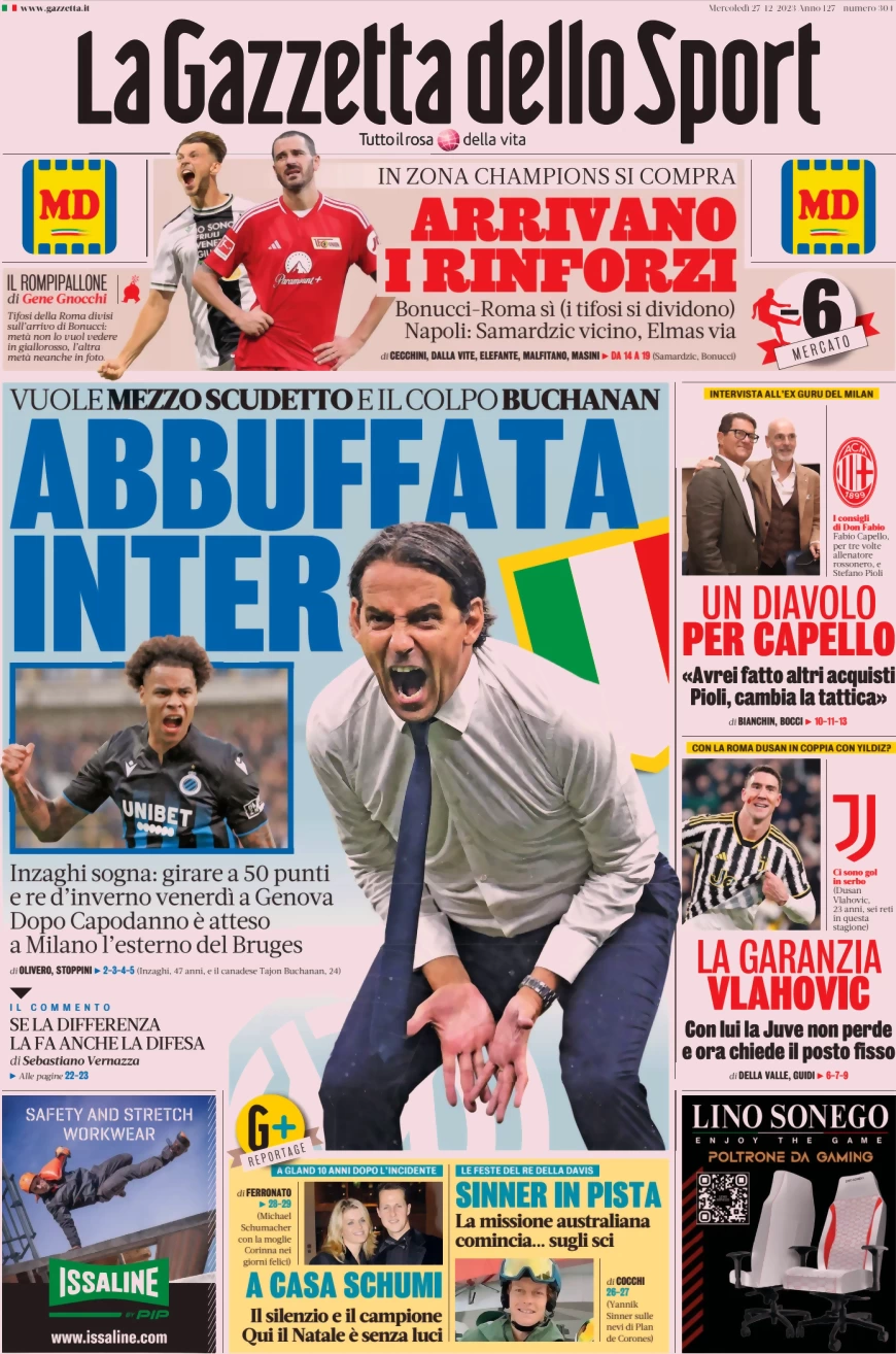 Le Prime Pagine Sportive Nazionali – 27 dicembre