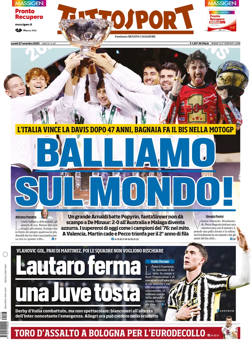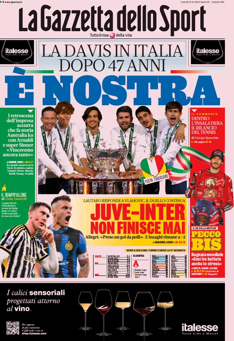 Le Prime Pagine Sportive Nazionali – 27 novembre