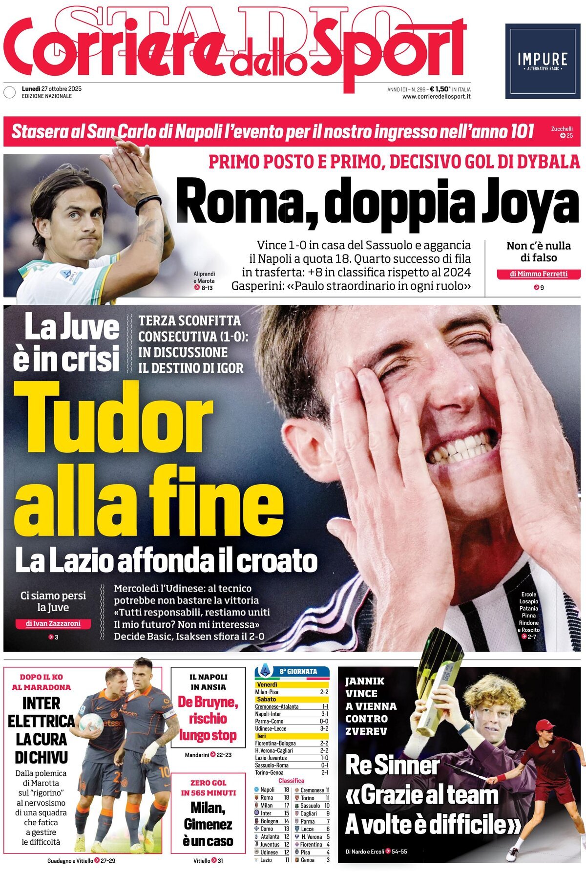 Le prime pagine sportive nazionali – 27 ottobre 2025