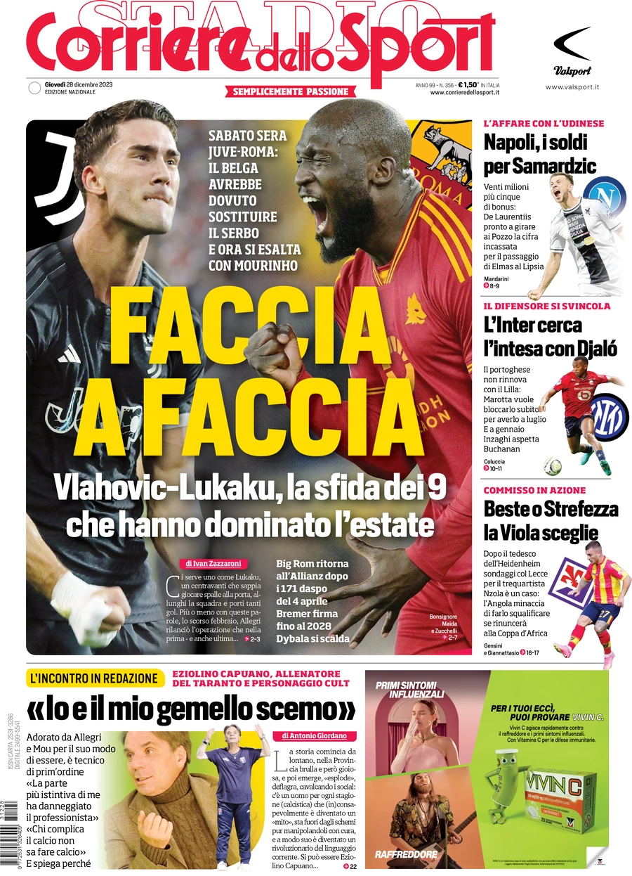 Le Prime Pagine Sportive Nazionali – 28 dicembre