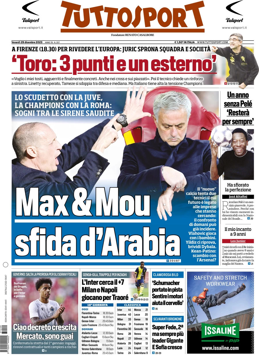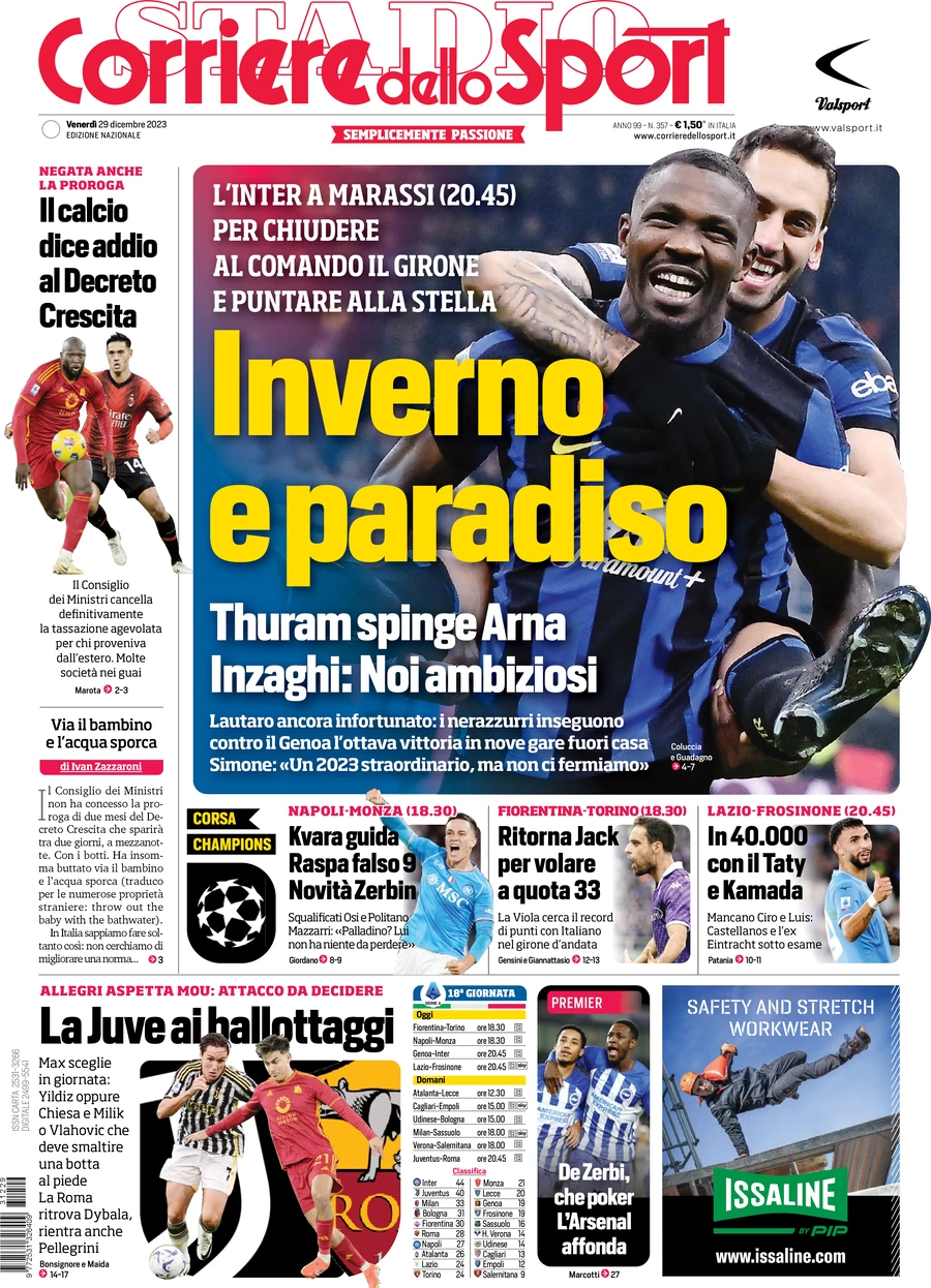 Le Prime Pagine Sportive Nazionali – 29 dicembre