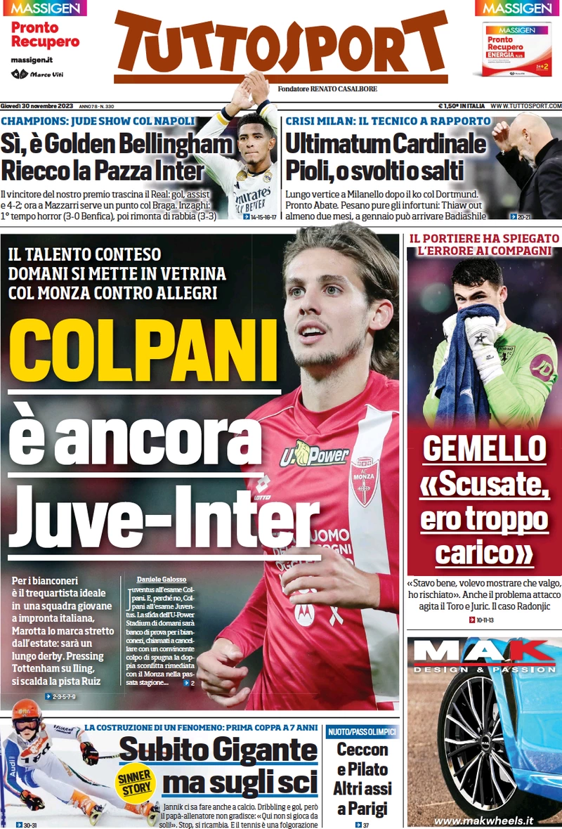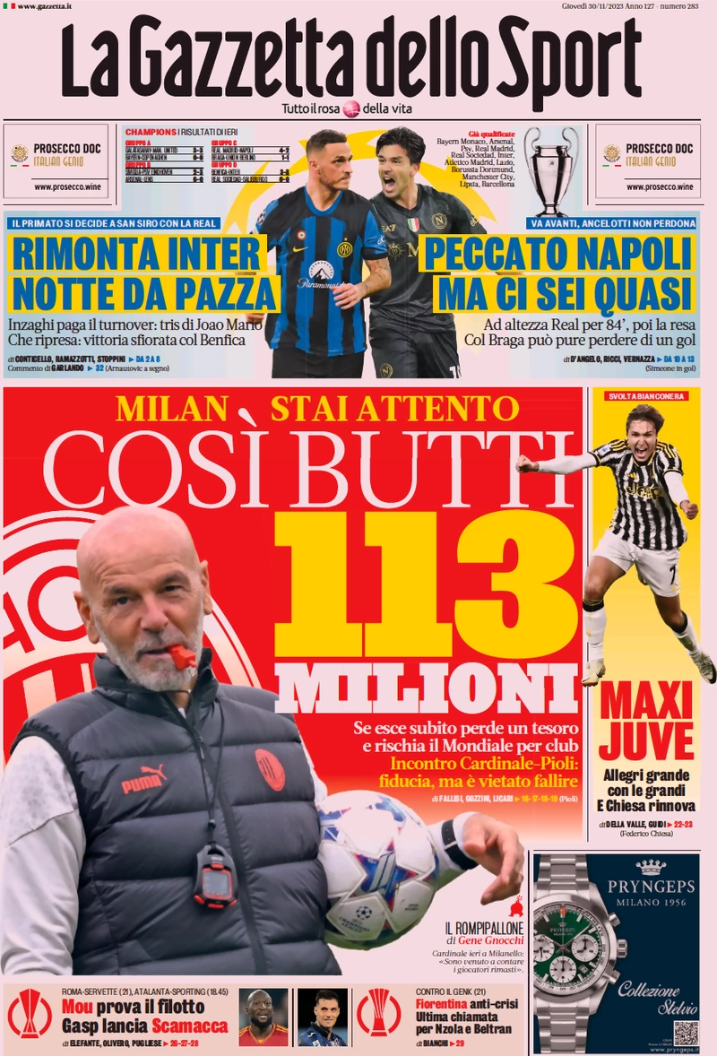 Le Prime Pagine Sportive Nazionali – 30 novembre
