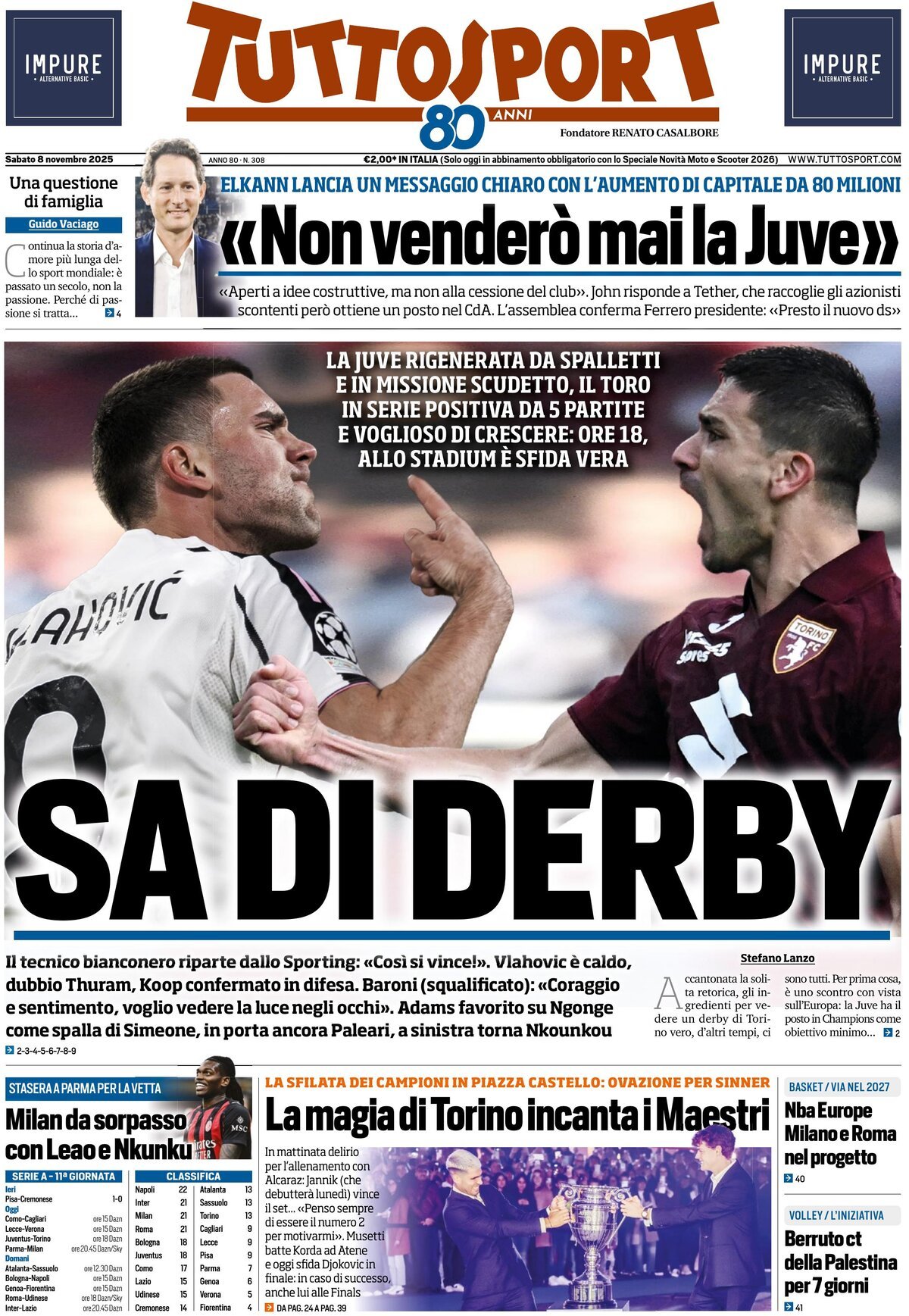 Le prime pagine sportive nazionali – 8 novembre 2025