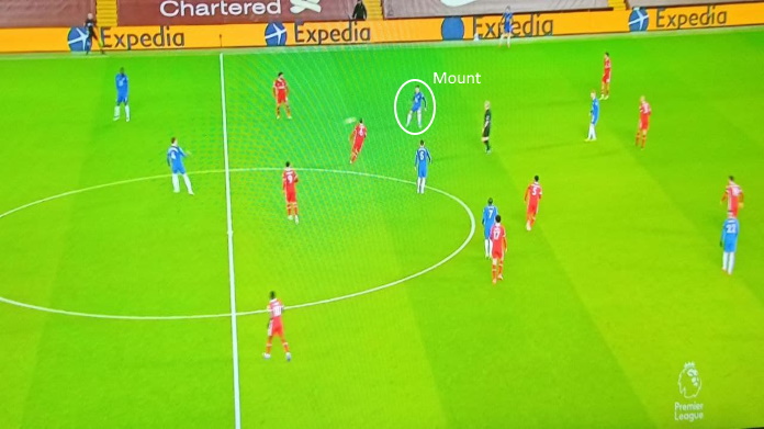 In questo contesto, Mount – autore del gol della vittoria – si è esaltato. Una volta che il Chelsea superava la prima pressione dei Reds, si aprivano tanti spazi: sia tra le linee che in profondità. Il talento inglese, muovendosi parecchio, ha fatto da costante raccordo tra centrocampo e attacco. Il Chelsea lo ha imbeccato con continuità nel mezzo-spazio sinistro, dove era sempre libero di ricevere.