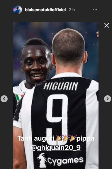 Involontaria gaffe sui social network che ha visto come protagonista il centrocampista francese della Juventus, Blaise Matuidi, all’indomani del pareggio 0-0 contro l’Inter. In occasione del trentesimo compleanno del compagno di squadra, l’attaccante argentino Gonzalo Higuain, l’ex centrocampista del Paris Saint-Germain ha pensato bene di festeggiare attraverso Instagram il traguardo del Pipita. Peccato, tuttavia, per un piccolo particolare non passato inosservato al popolo della rete.