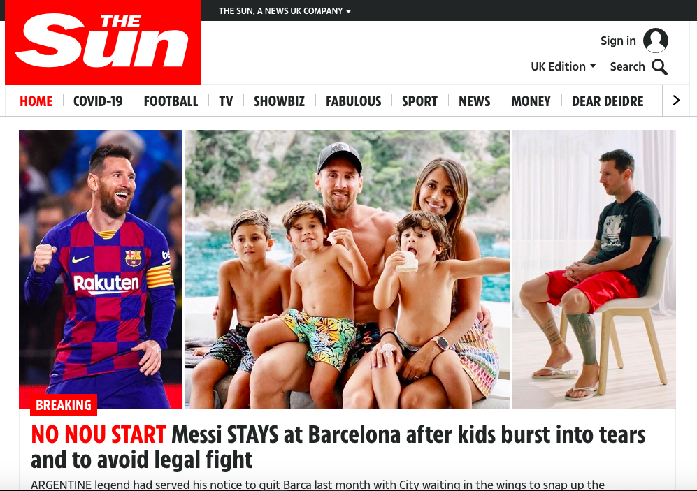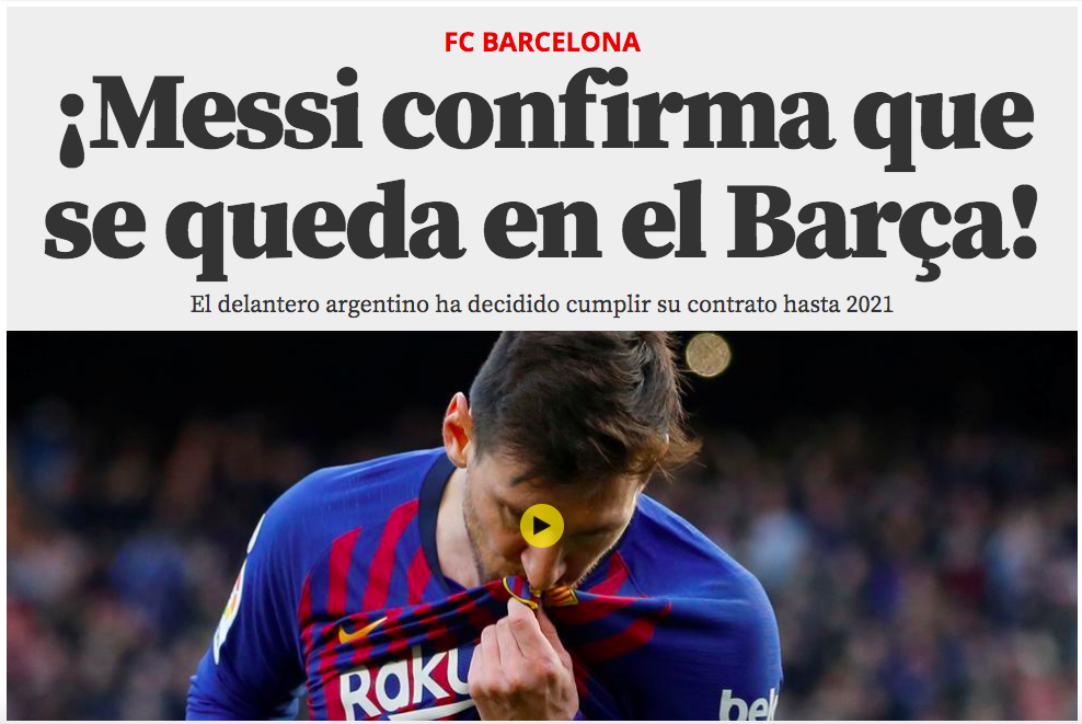 La decisione di Lionel Messi di rimanere al Barcellona si è presa ovviamente l’apertura dei principali siti esteri. Dal Mundo Deportivo a Marca passando ai francesi dell’Équipe agli inglesi del Sun ecco come le testate giornalistiche estere hanno appreso la notizia.