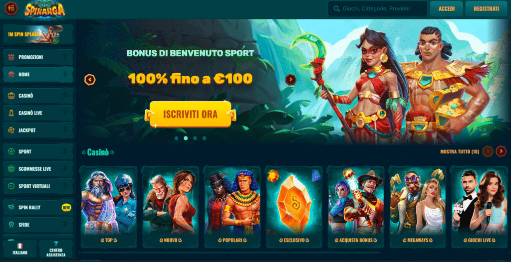 Spinanga unisce casinò e scommesse sportive in un’unica piattaforma veloce e performante. I prelievi immediati con criptovalute o portafogli digitali sono il suo punto forte. Inoltre, l’area sportiva include live betting, statistiche in tempo reale e promozioni dinamiche.