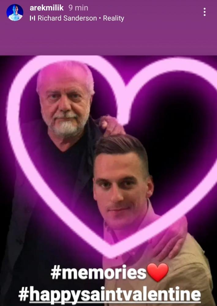 Arek Milik, nuovo centravanti del Marsiglia, sembra aver ormai dimenticato le frizioni con il proprioo ex Patron Aurelio De Laurentiis e su Instagram decide di passare il proprio San Valentino proprio in compagnia del presidente azzurro.