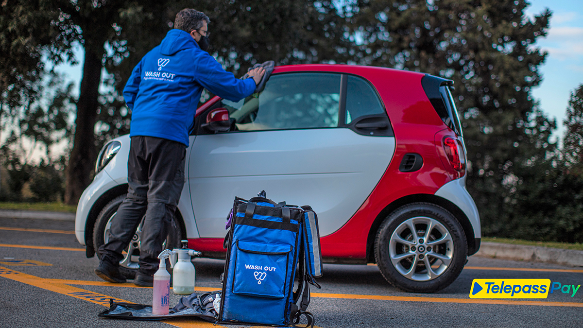 Con Telepass Pay e Wash Out lavaggio auto senza acqua e con prodotti sostenibili.