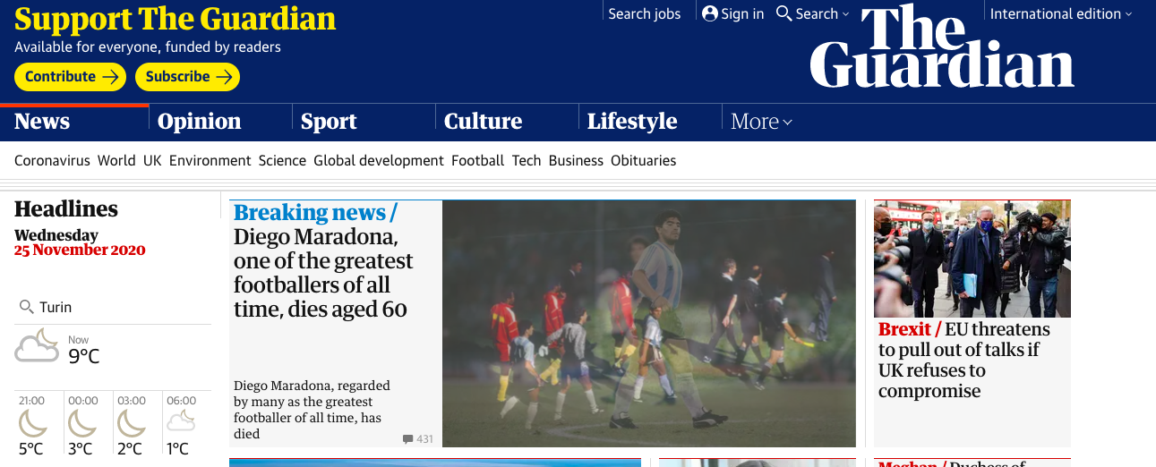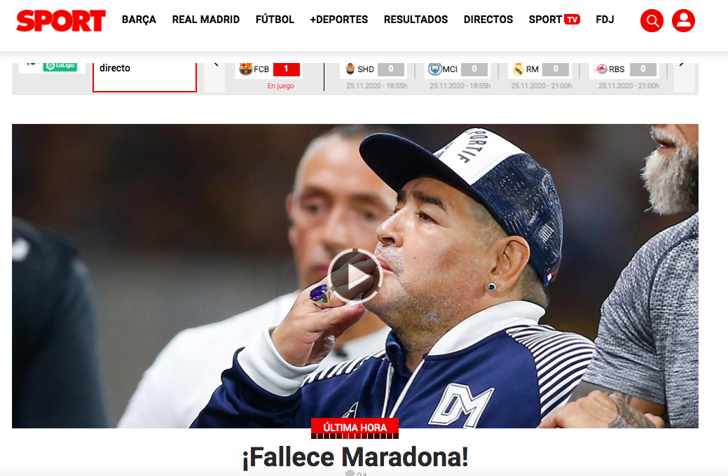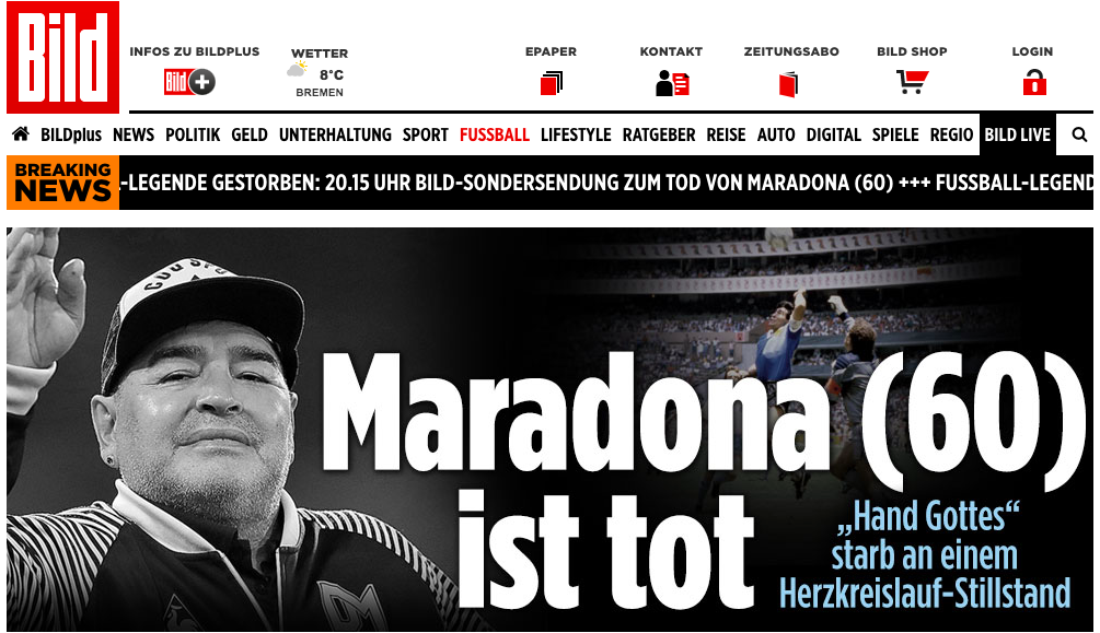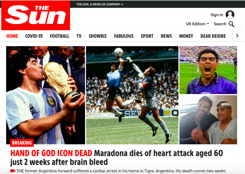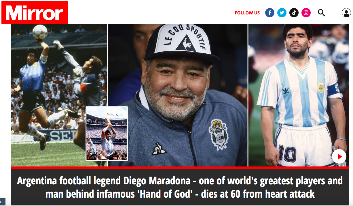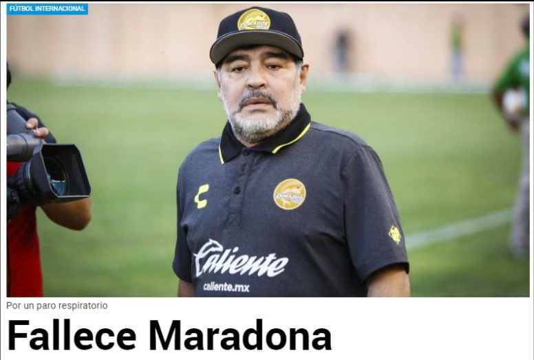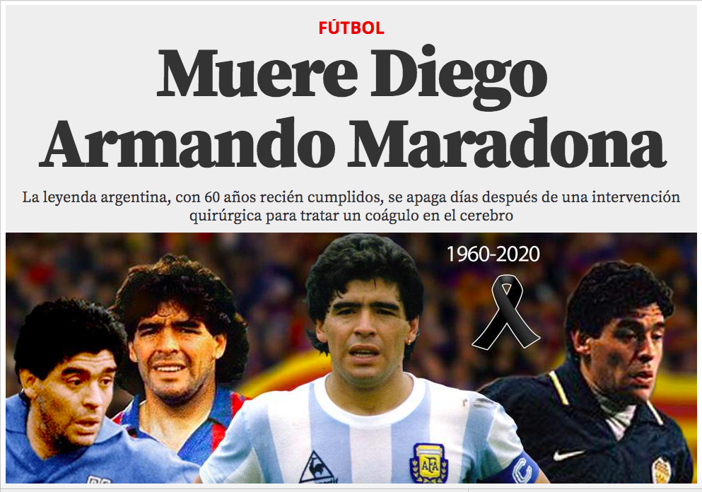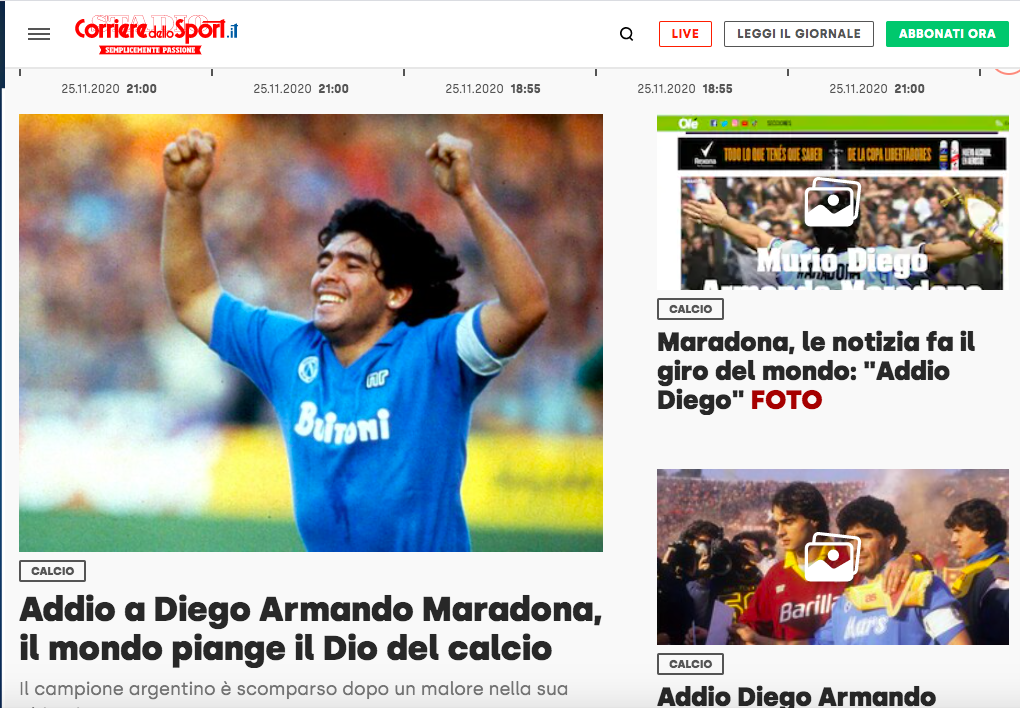 Morte Maradona: l’apertura dei siti di tutto il mondo – FOTO