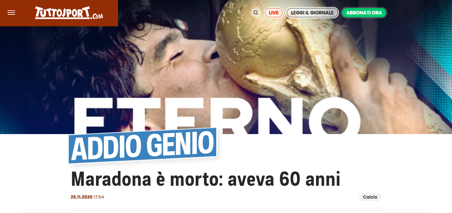 Morte Maradona: la scomparsa del Pibe de Oro ha fatto in pochi secondi il giro del mondo occupando le prime pagine dei siti